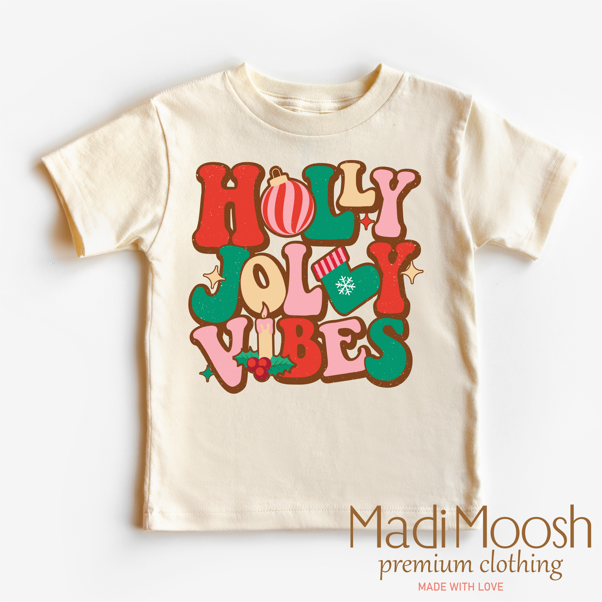 Christmas shirt cotton shirt holiday shirt kids shirt adult shirt Holly Jolly Vibes Christmas shirt Bella Canvas cotton shirt direct-to-garment printed shirt eco-friendly holiday shirt kids and adults Christmas shirt