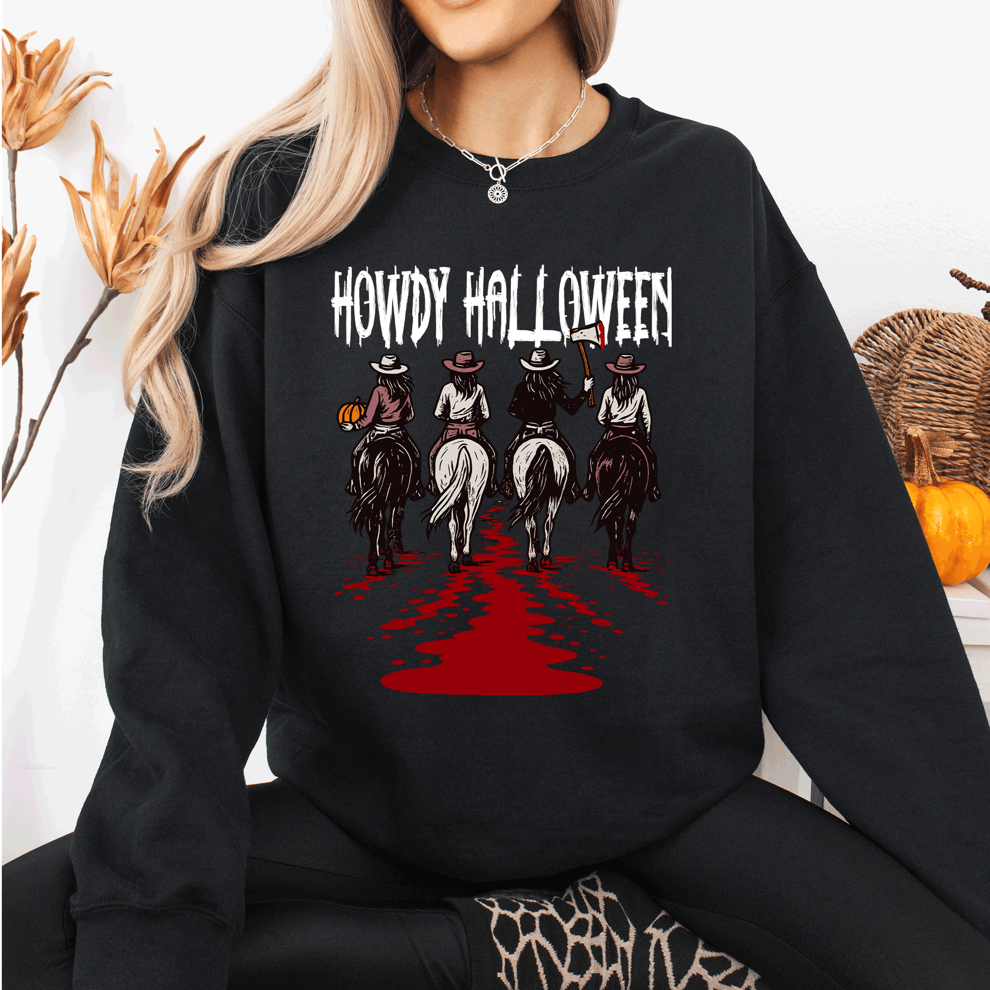 sweatshirt Halloween cowgirls western spooky Howdy Halloween sweatshirt western spooky sweatshirt cowgirl Halloween apparel unisex Halloween sweatshirt casual Halloween clothing Halloween graphic sweatshirt