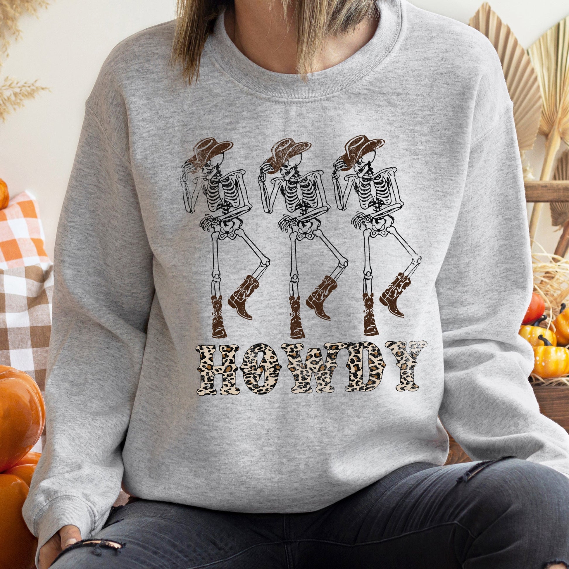 Halloween sweatshirt unisex pullover cotton blend soft fleece Howdy Leopard Halloween sweatshirt cozy cotton polyester pullover fall seasonal sweatshirt Halloween graphic sweatshirt
