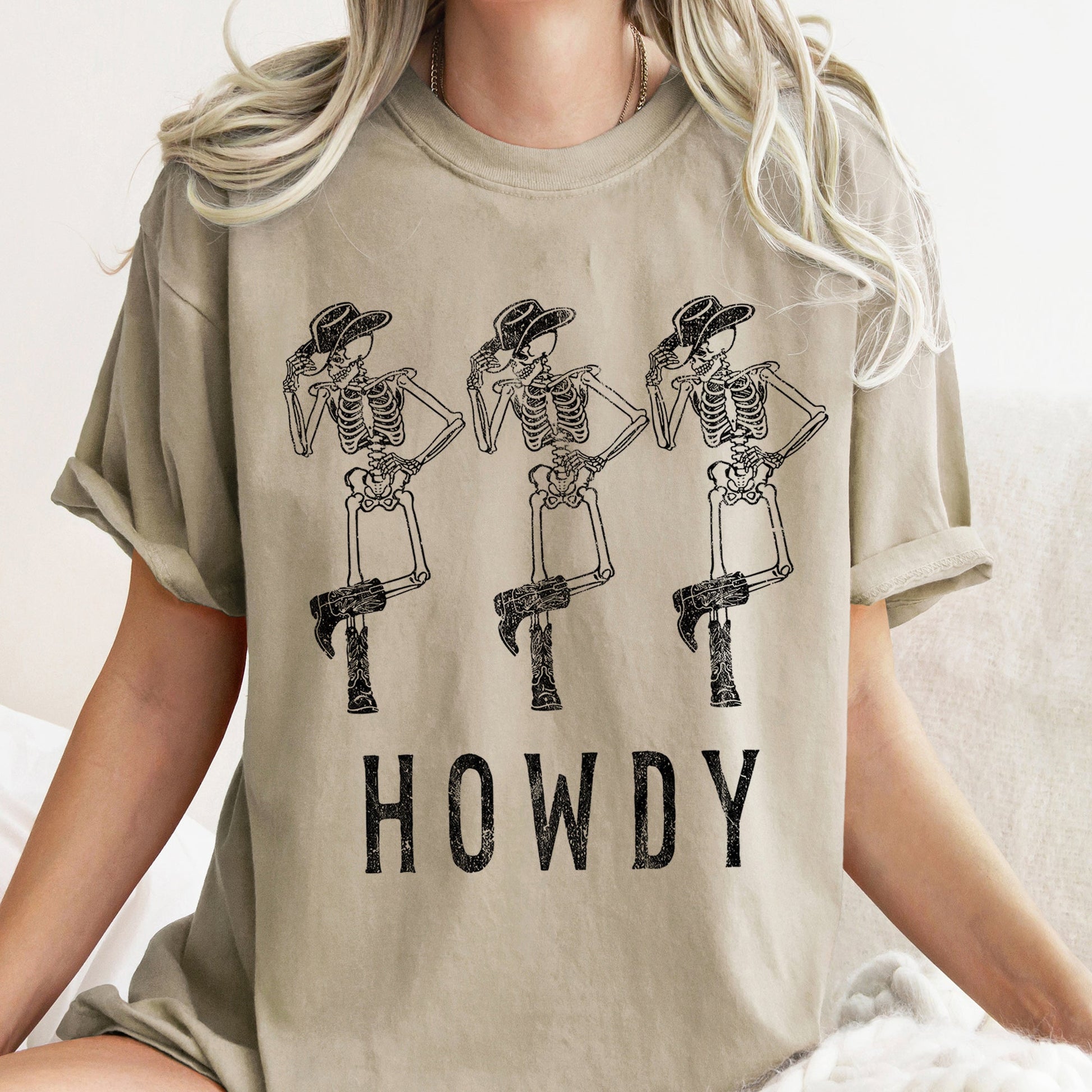 Howdy Skeletons Retro Western Halloween Comfort Colors Tshirt