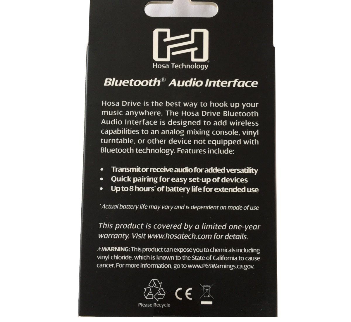 Hosa Drive is the best way to hook up your music anywhere. The Hosa Drive Bluetooth® Audio Interface is designed to add wireless capabilities to an analog mixing console, vinyl turntable, or other device not equipped with Bluetooth technology. Features include: