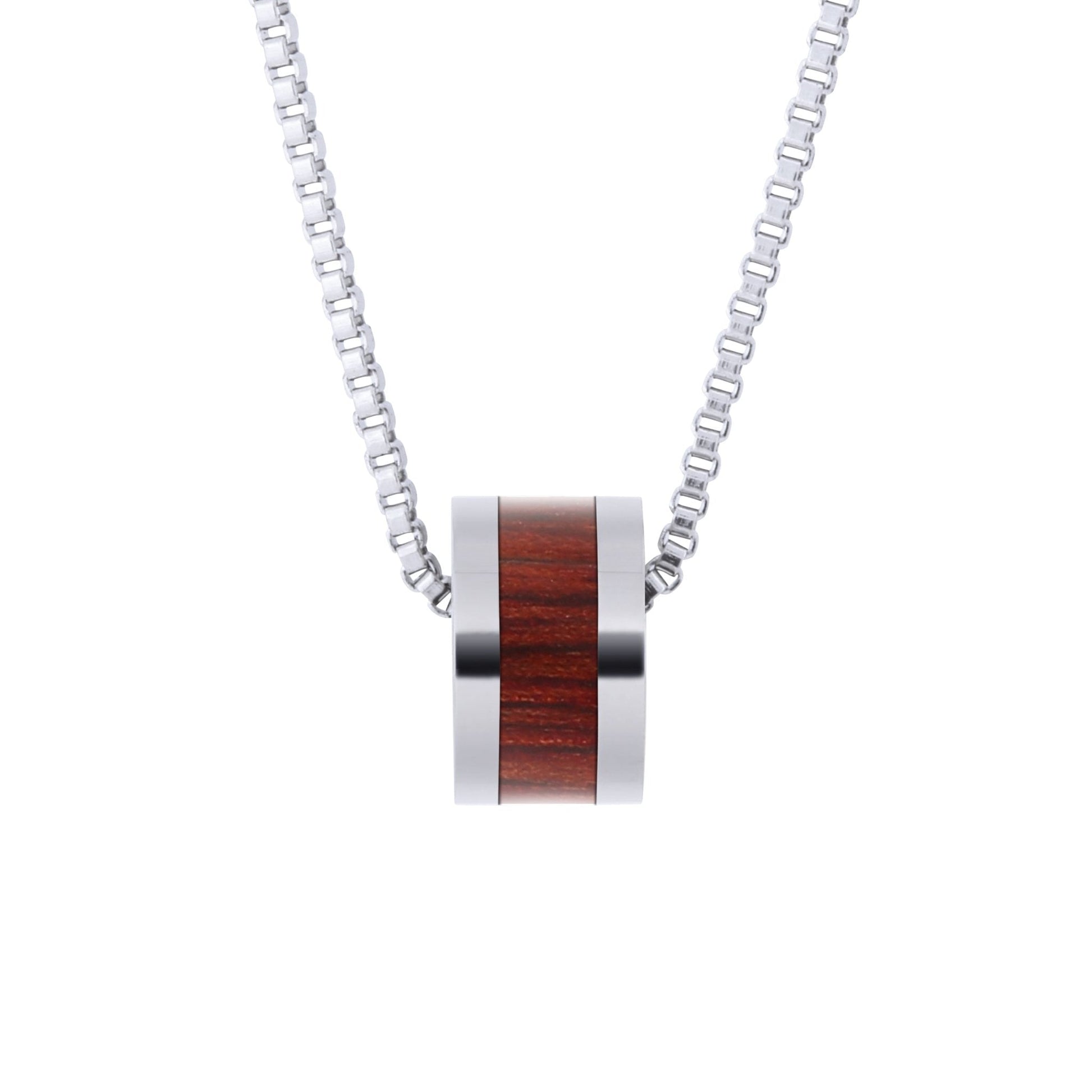 Stainless steel barrel bead pendant inlaid with responsibly sourced Jarrah timber from southwest Australia.