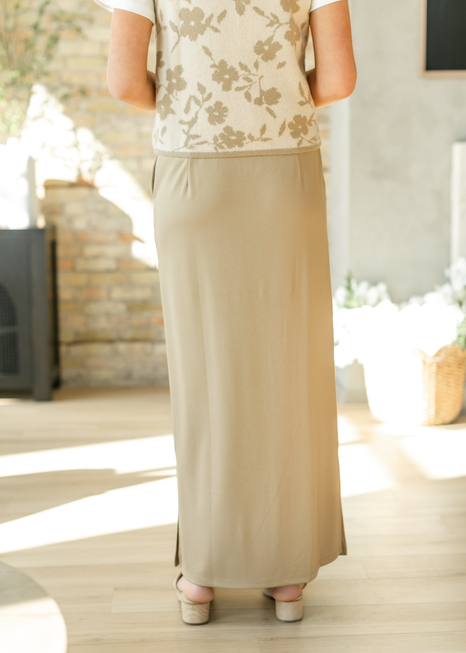 Thoughtfully designed here at Inherit, the Jordan Knit Maxi Skirt is ready for a casual day of running errands, working in the office, or hanging out with family while being confidently you! This maxi skirt features an elastic waist with an adjustable drawstring so you can tailor it to how you prefer! There are small side slits for walkability and kangaroo style pockets on the side that can hold all the things! Made from high quality knit fabric, this skirt makes dressing a breeze!