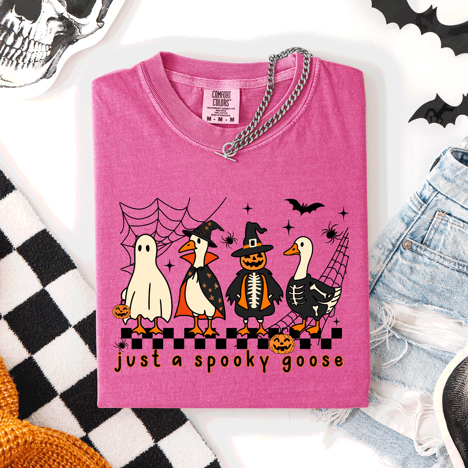 Just A Spooky Goose, Checkered, Halloween, Spooky, Comfort Colors T-Shirt