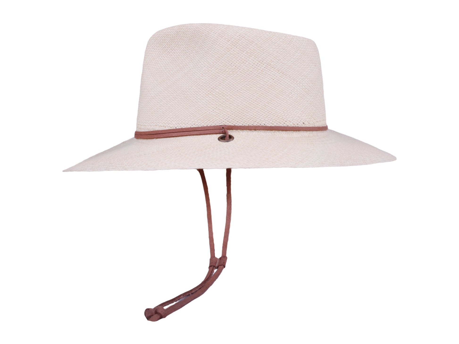 Unleash your adventurous spirit with the Kalahari Panama! This original Panama hat features a wide brim and a chin strap, perfect for all your outdoor explorations. Stay stylish and protected under the sun with this must-have accessory.
