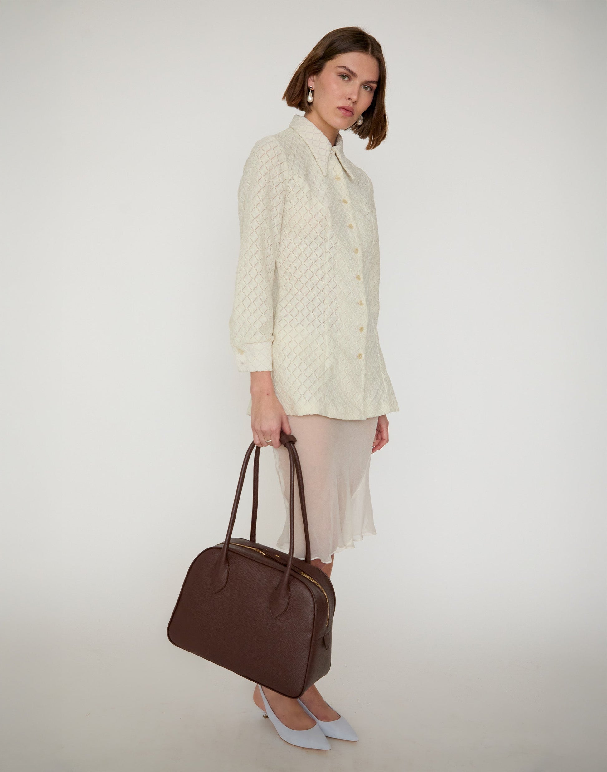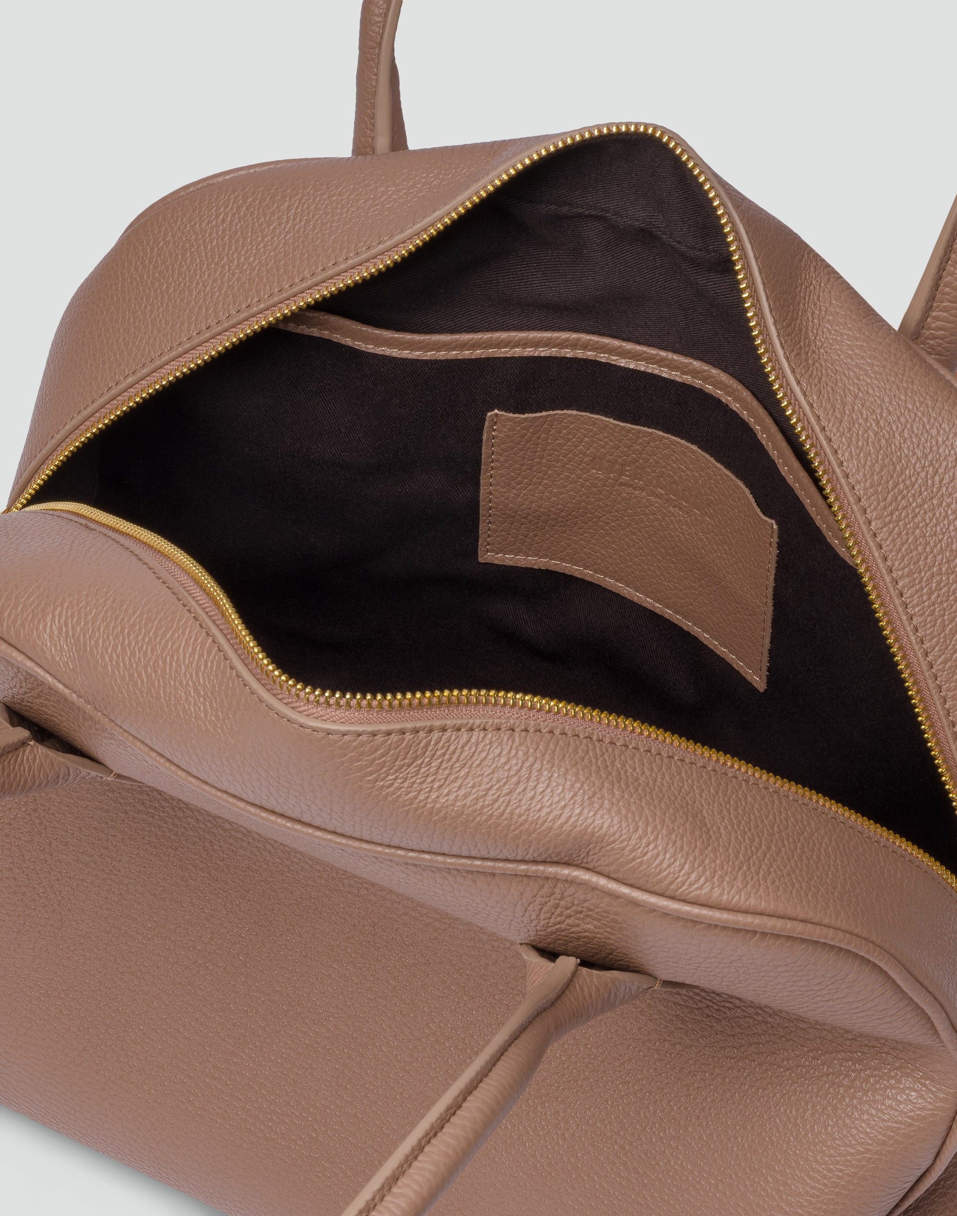 Sleek yet sturdy, the Autostrada is built for motion. Crafted in a soft, supple tumbled leather with rolled soft leather straps, its durable, lightweight construction makes it the perfect work bag, travel tote, or daily carryall.