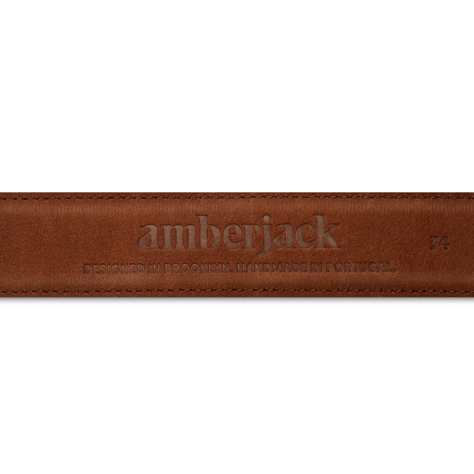 Handmade in Portugal, this belt is made with natural, full-grain leather and soft Italian nubuck. The solid zamak buckle is durable and corrosion-resistant. With wear, the leather will soften and develop its own character.