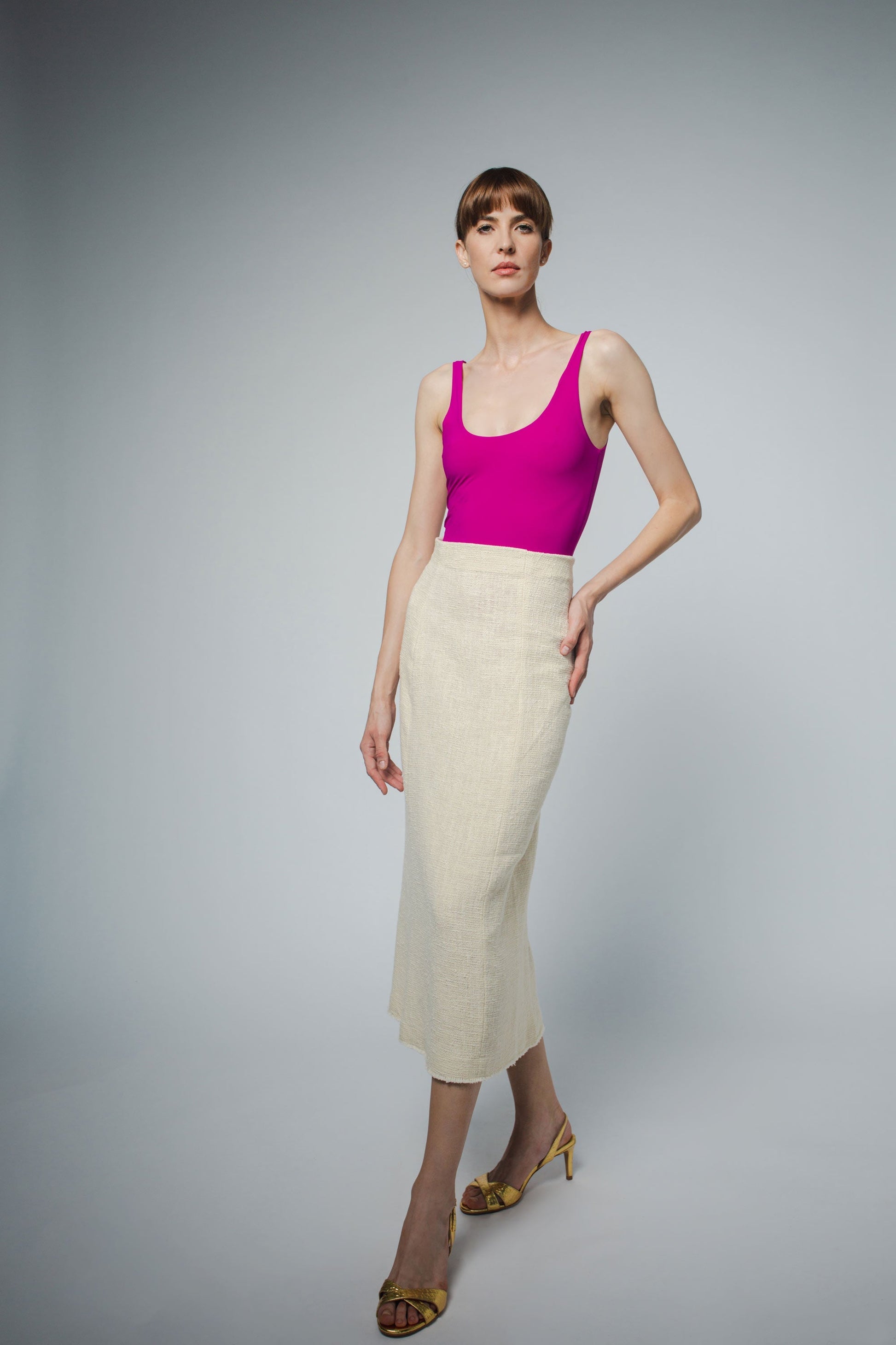 Seen here in Fuchsia, Anca is 5'7" (1.75cm) and wears size 1. Body-conscious by design, for additional sizing information, please click here.