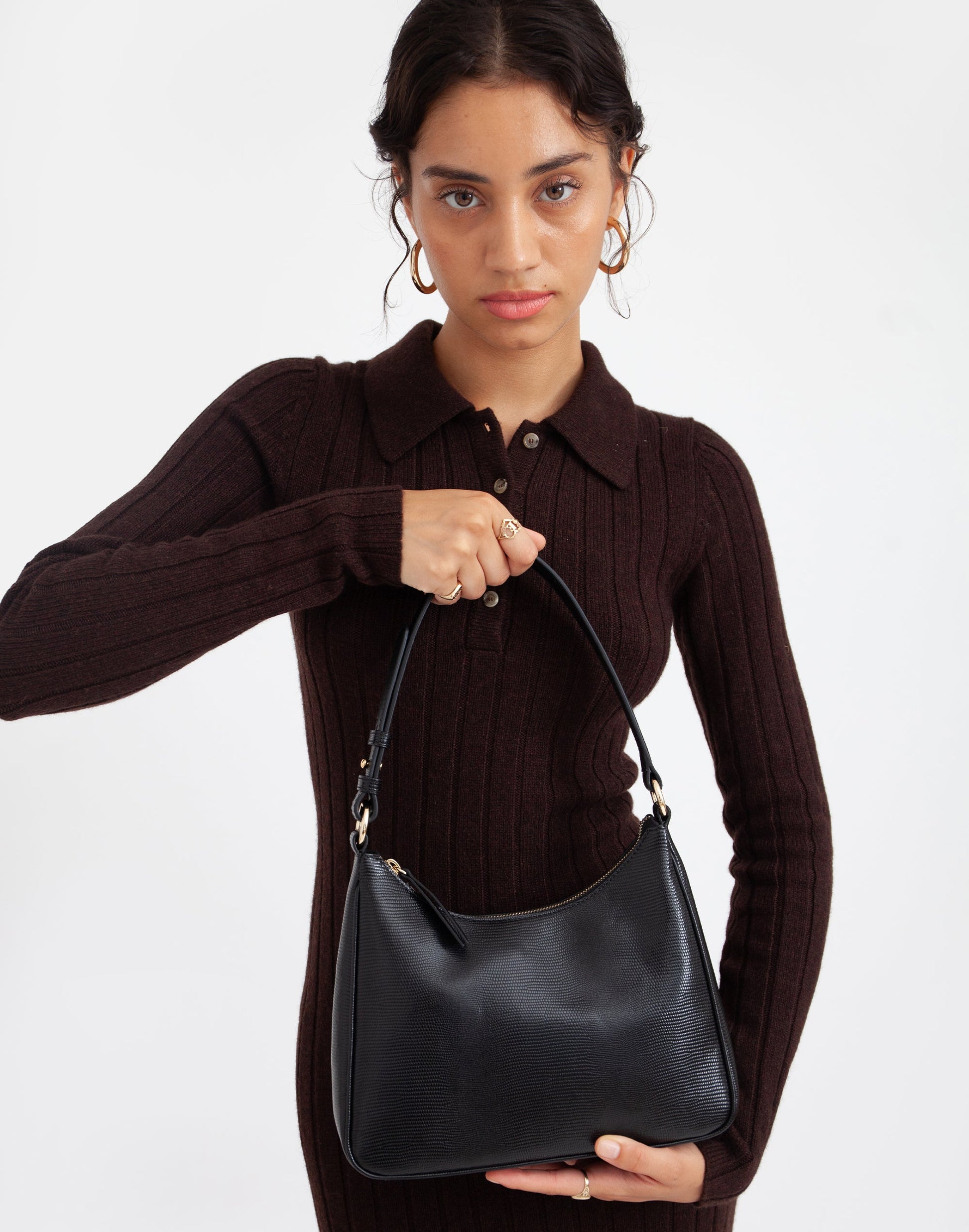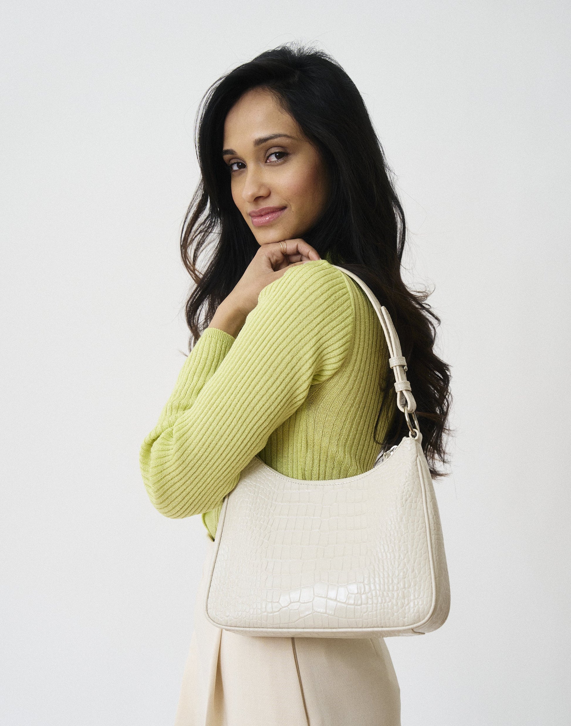 Our medium shoulder bag is the best of all worlds. It's big enough for every day, with enough room to fit a large wallet and all your everyday essentials, but small enough for a night out. Crafted from luxury leftovers, it's the perfect day-to-night medium shoulder purse that's both conscious and cute.