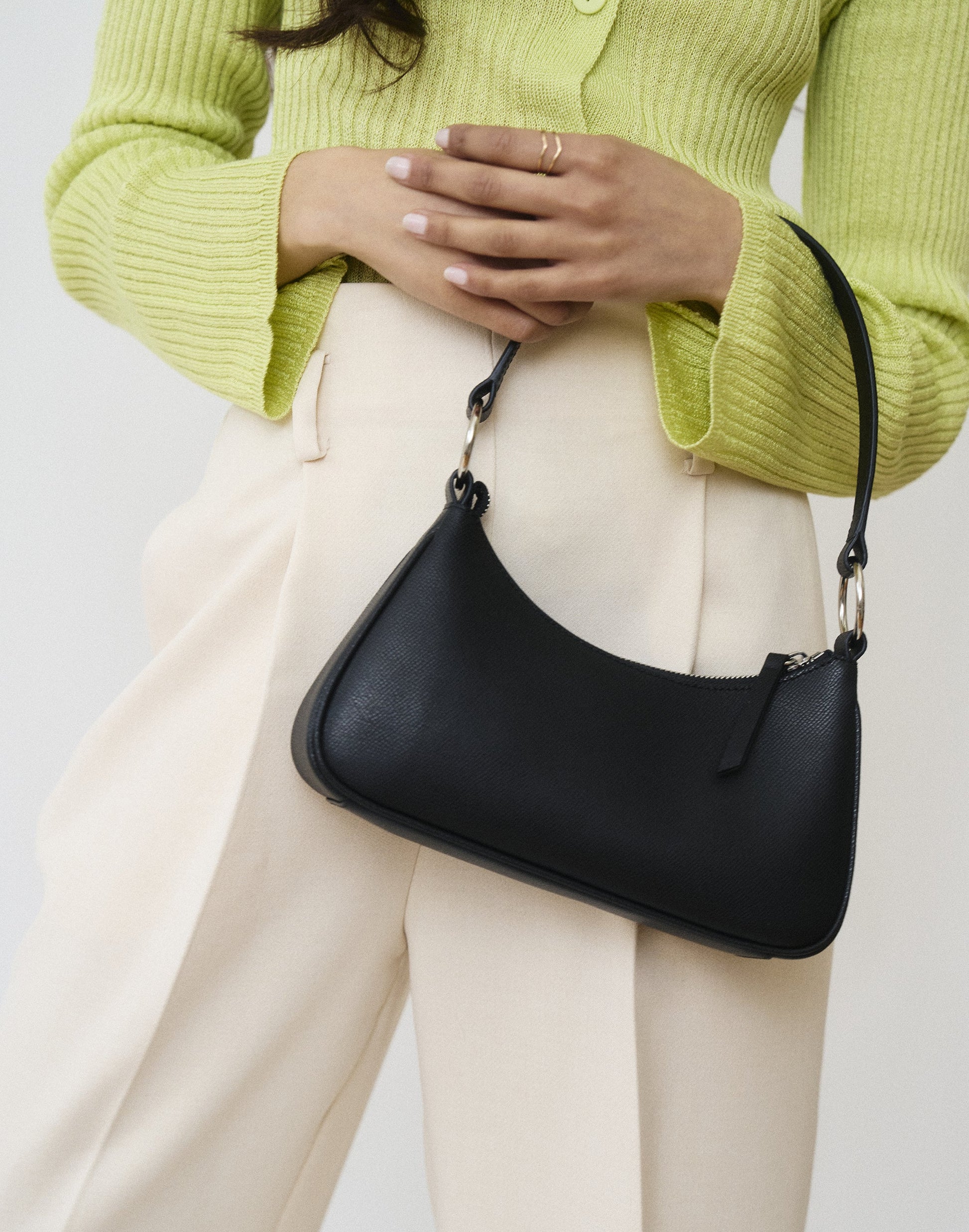 The perfect sustainable baguette bag does exist. This 90's inspired structured baguette purse is the perfect size for brunch of a night out, holding a card wallet, keys, gloss and phone.