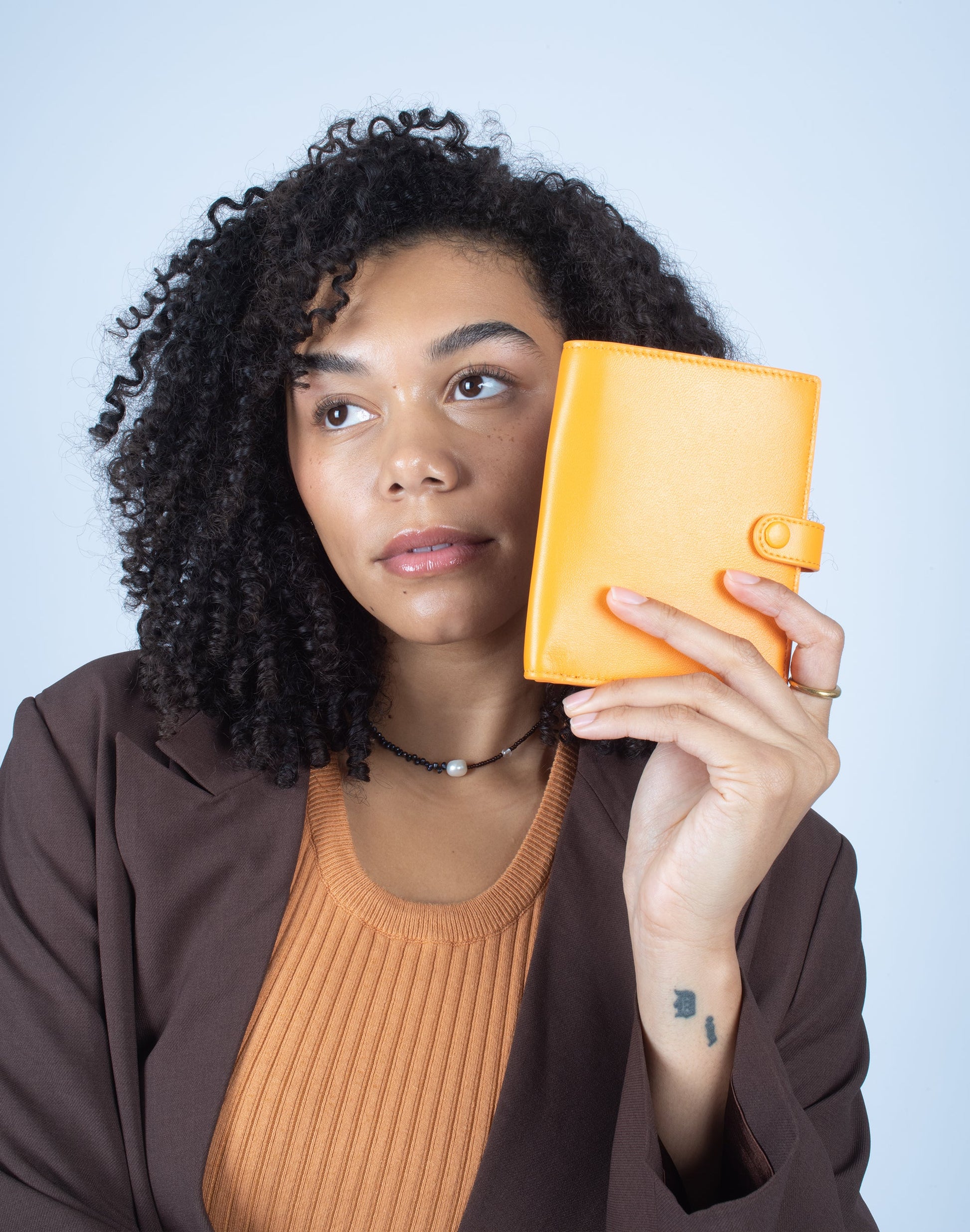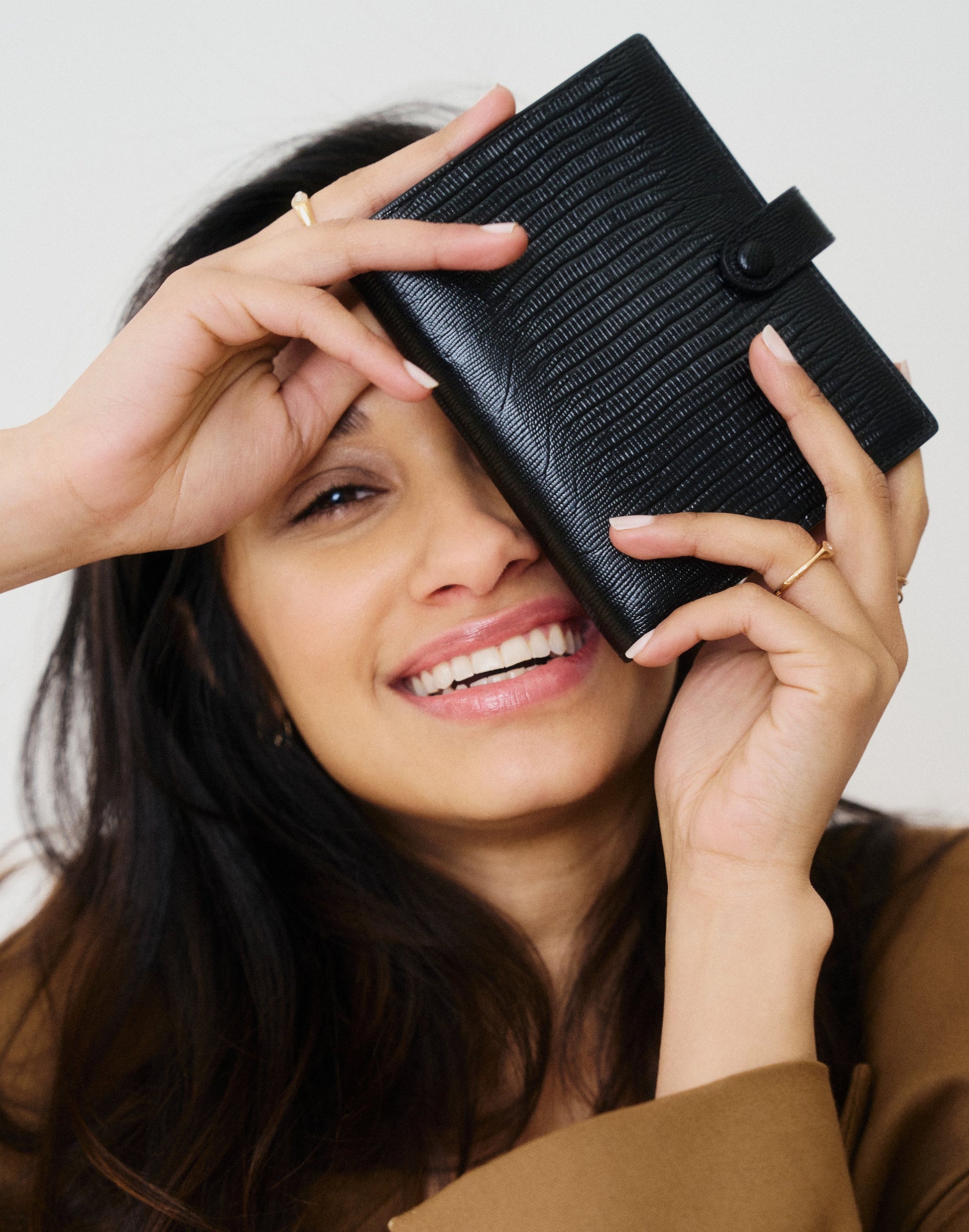 With 11 pockets total, this upcycled leather bifold wallet is here to help keep you organized. Our favorite feature? This large leather wallet comes equipped with a top entry cash pocket divided in two, to keep you home and travel currencies (or receipts) separated.