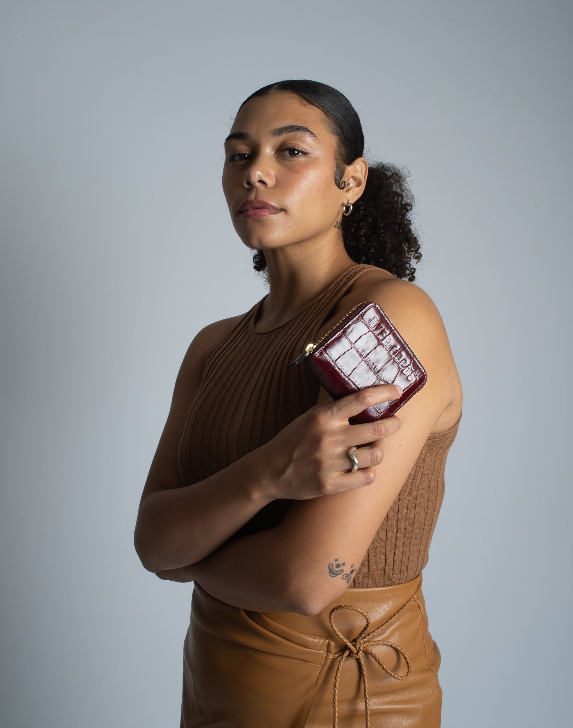 Somehow you can't leave the house without all the things. This leather zip wallet is here to keep things organized in a compact zip around wallet. With 3 card slots + 3 extra pockets, a snap-close change pocket and 2 cash pockets, there's space for it all. Plus, it's made from waste we diverted from landfills.
