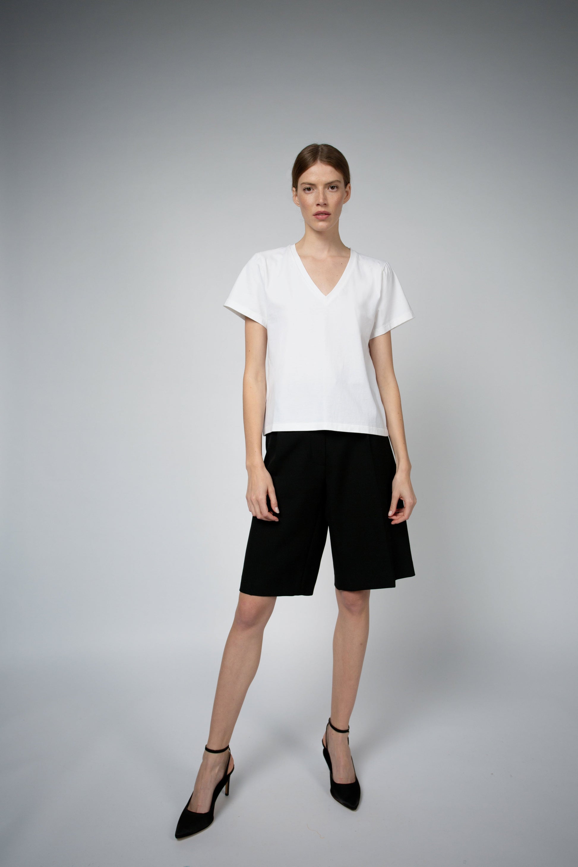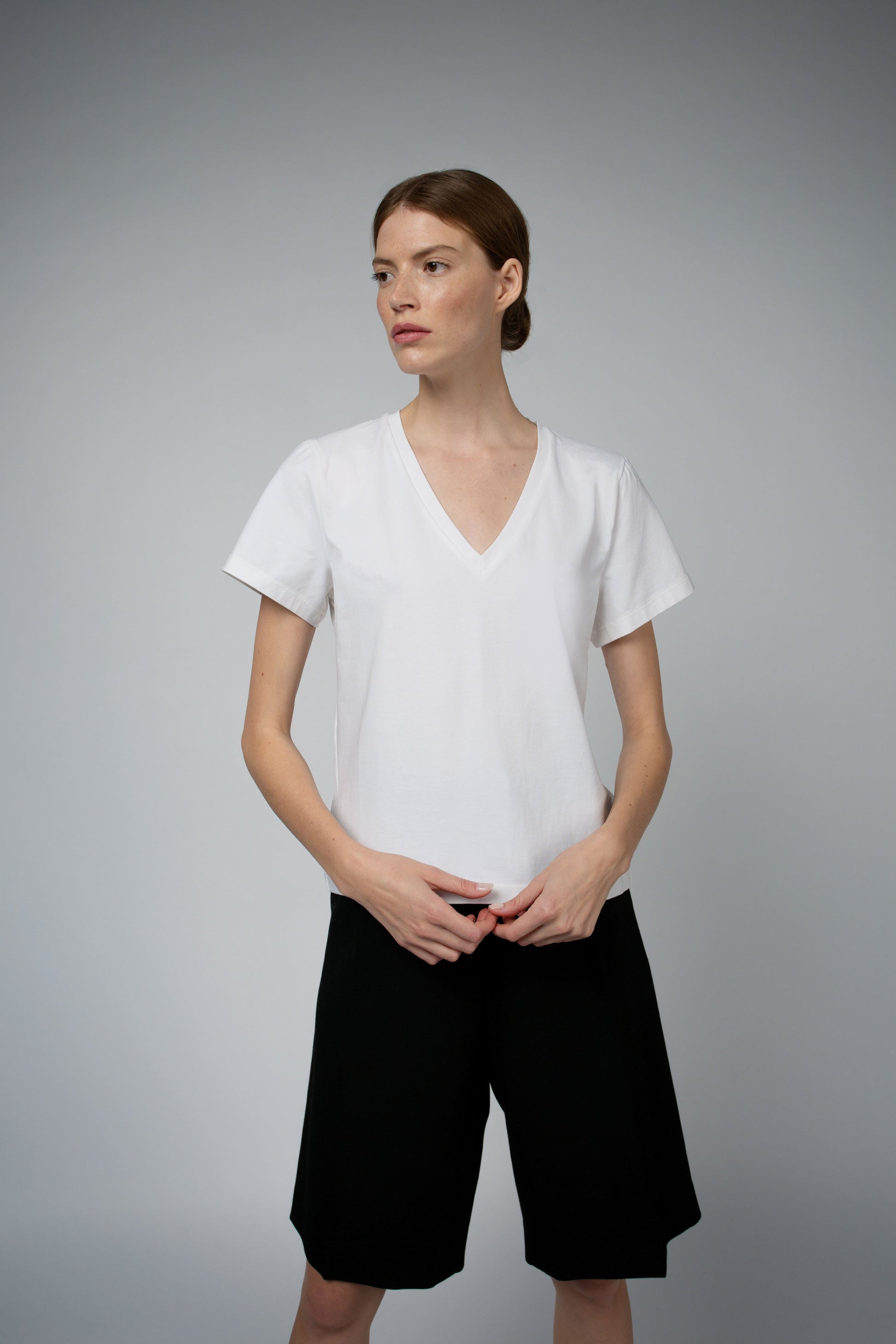 MAGDA ORGANIC COTTON V-NECK T-SHIRT IN WHITE