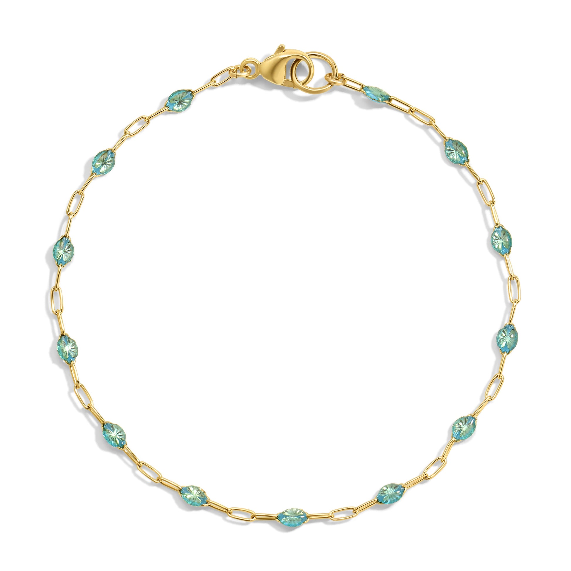 This enamel bracelet is the perfect pop of color with 14k gold-filled chain which makes it the perfect Summer Essential!
