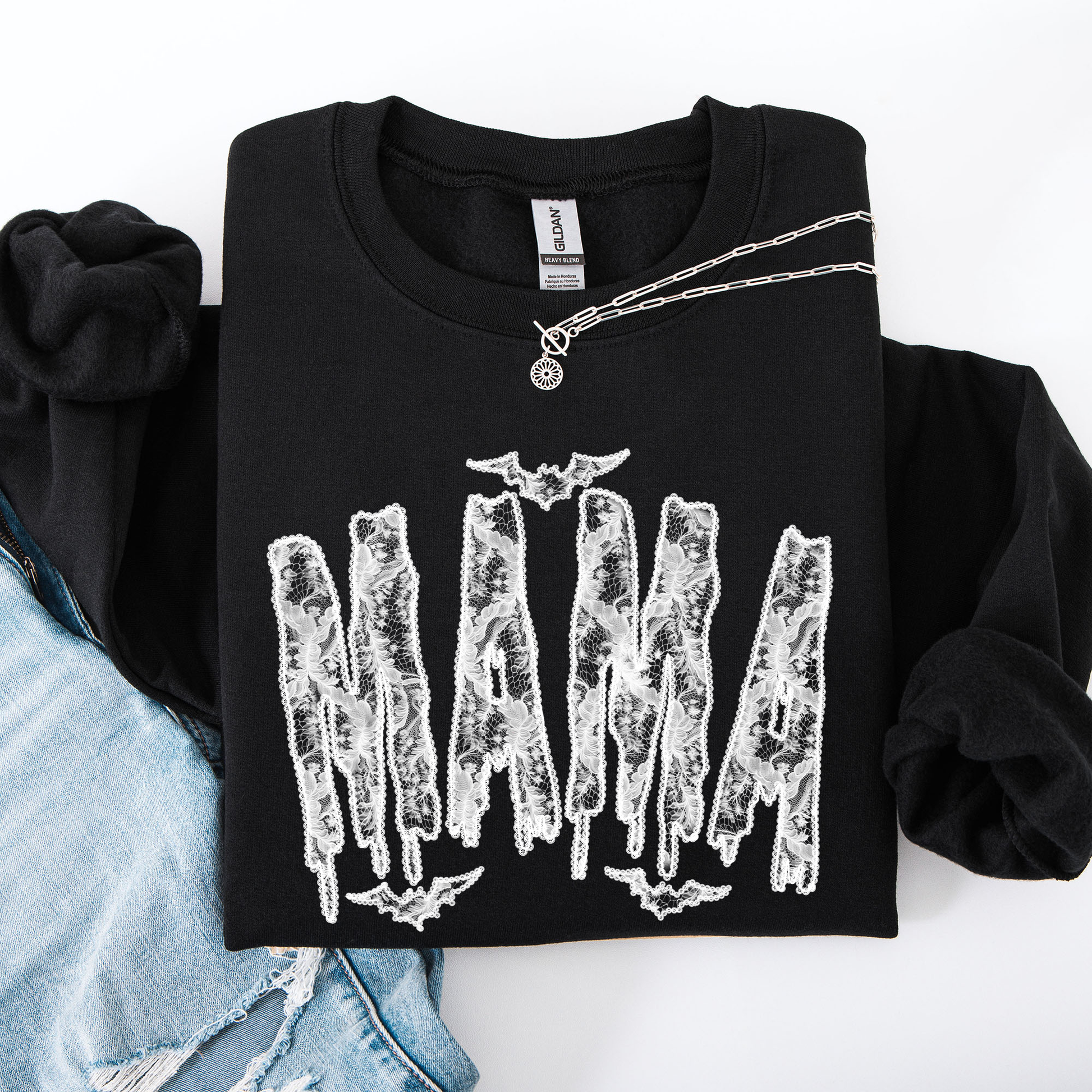 Mama, Faux Lace, Halloween, Coquette, Cute Sweatshirt