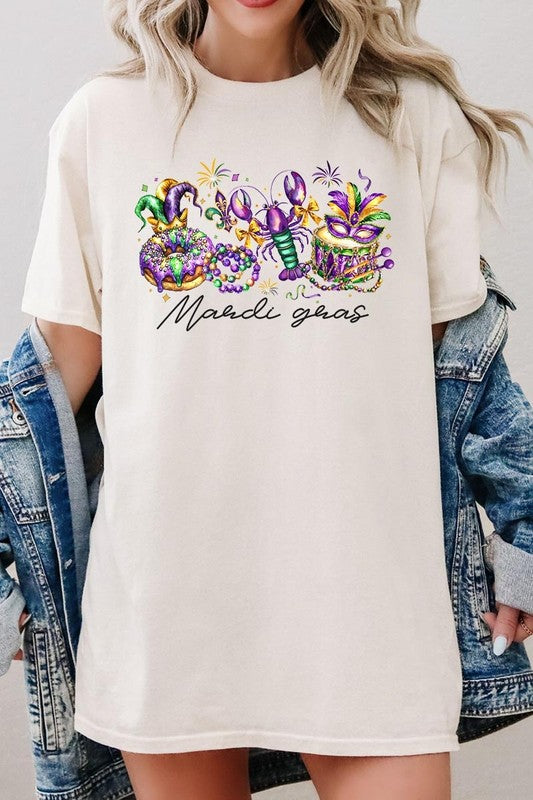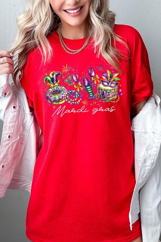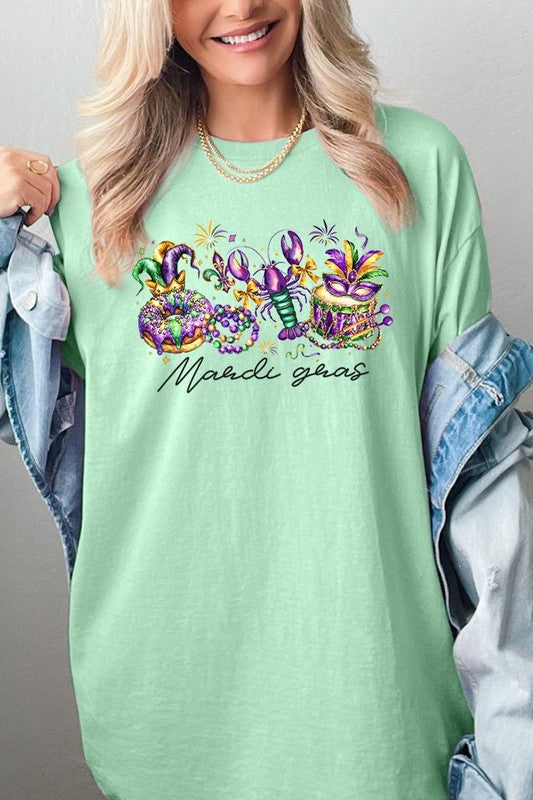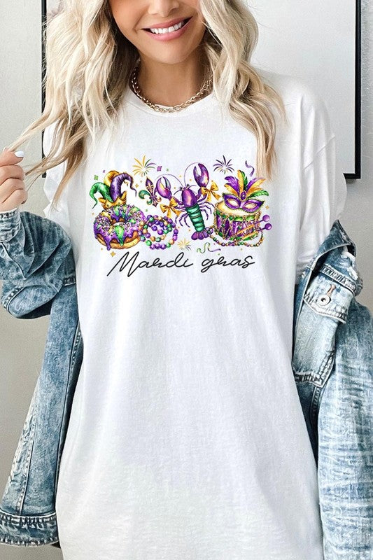 Mardi Gras Vibes Graphic Plus Heavy Cotton Tee. **PLUS SIZE**