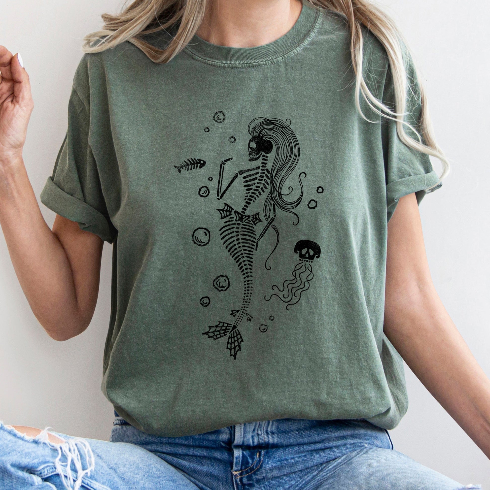 Mermaid Skeleton Jellyfish Retro Halloween Comfort Colors Tshirt