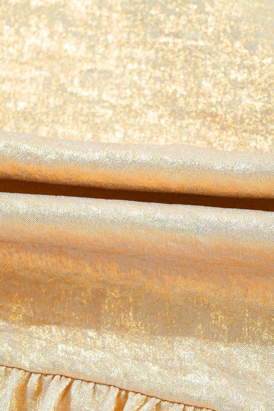 Metallic Frill V Neck Puff Sleeve Babydoll Blouse