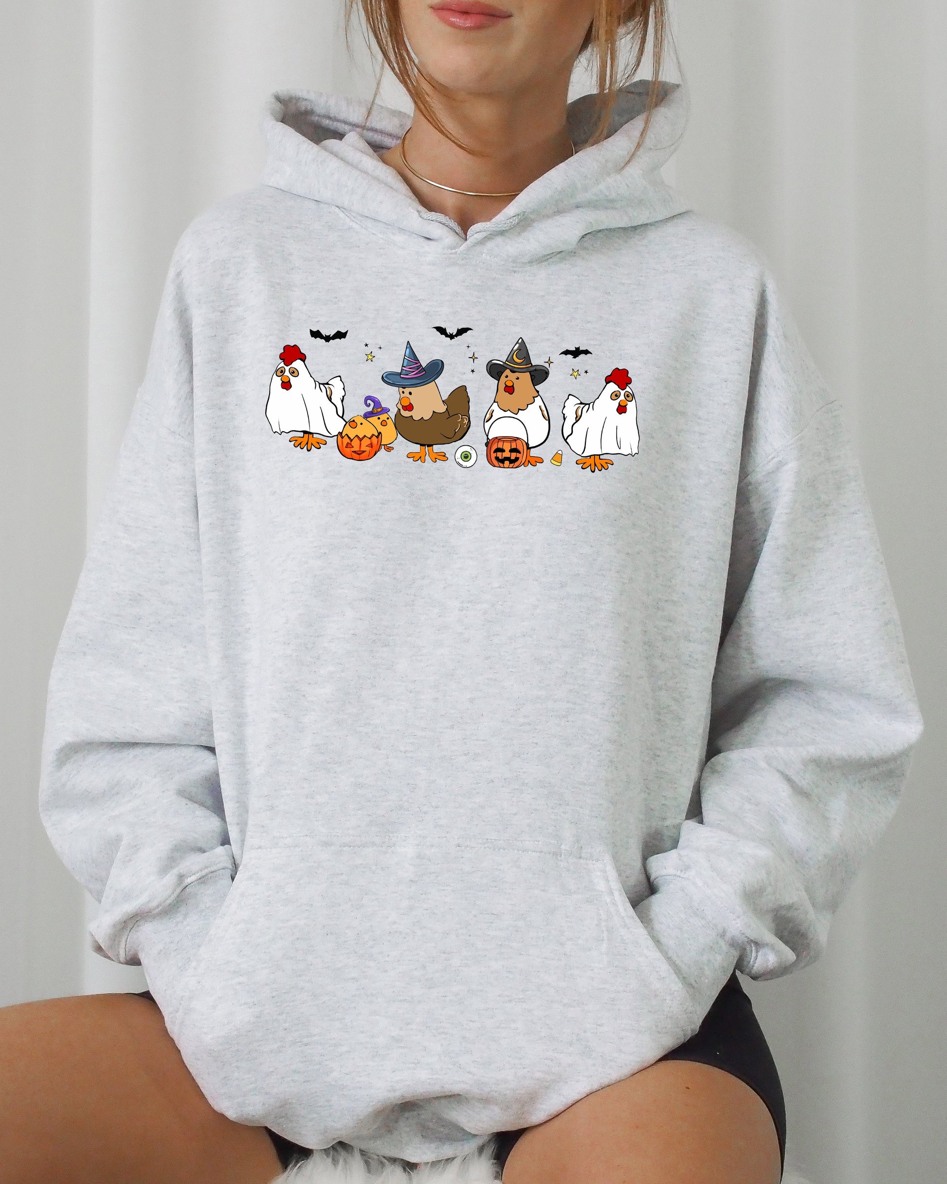 This Mini Chickens, Witch, Skeleton, Funny, Spooky, Aesthetic, Meme, Halloween, Costume, Hoodie, Hooded Sweatshirt is more than just a piece of clothing; it's a fun way to express your personality and celebrate the spooky season in style!