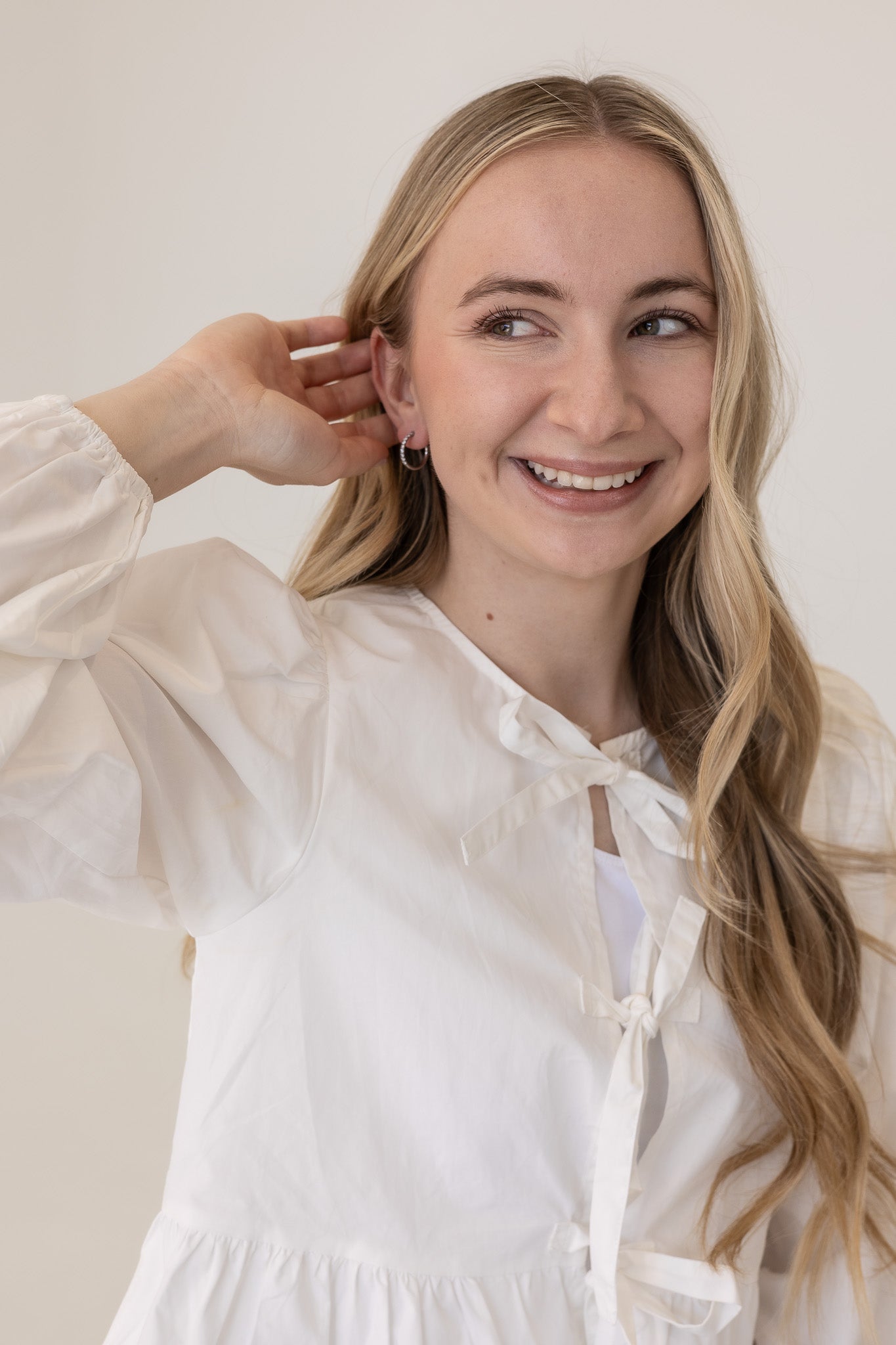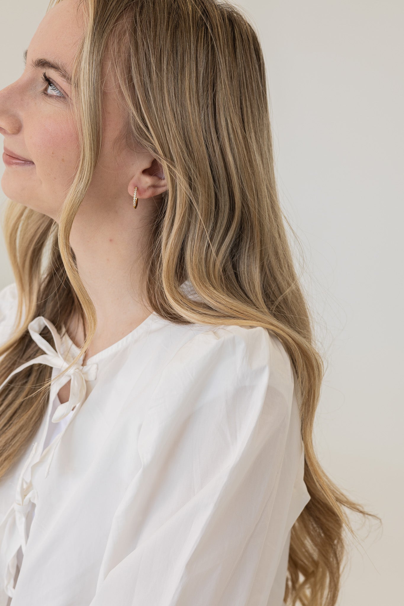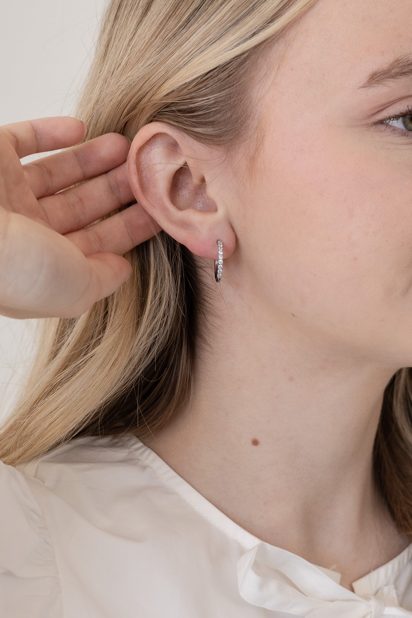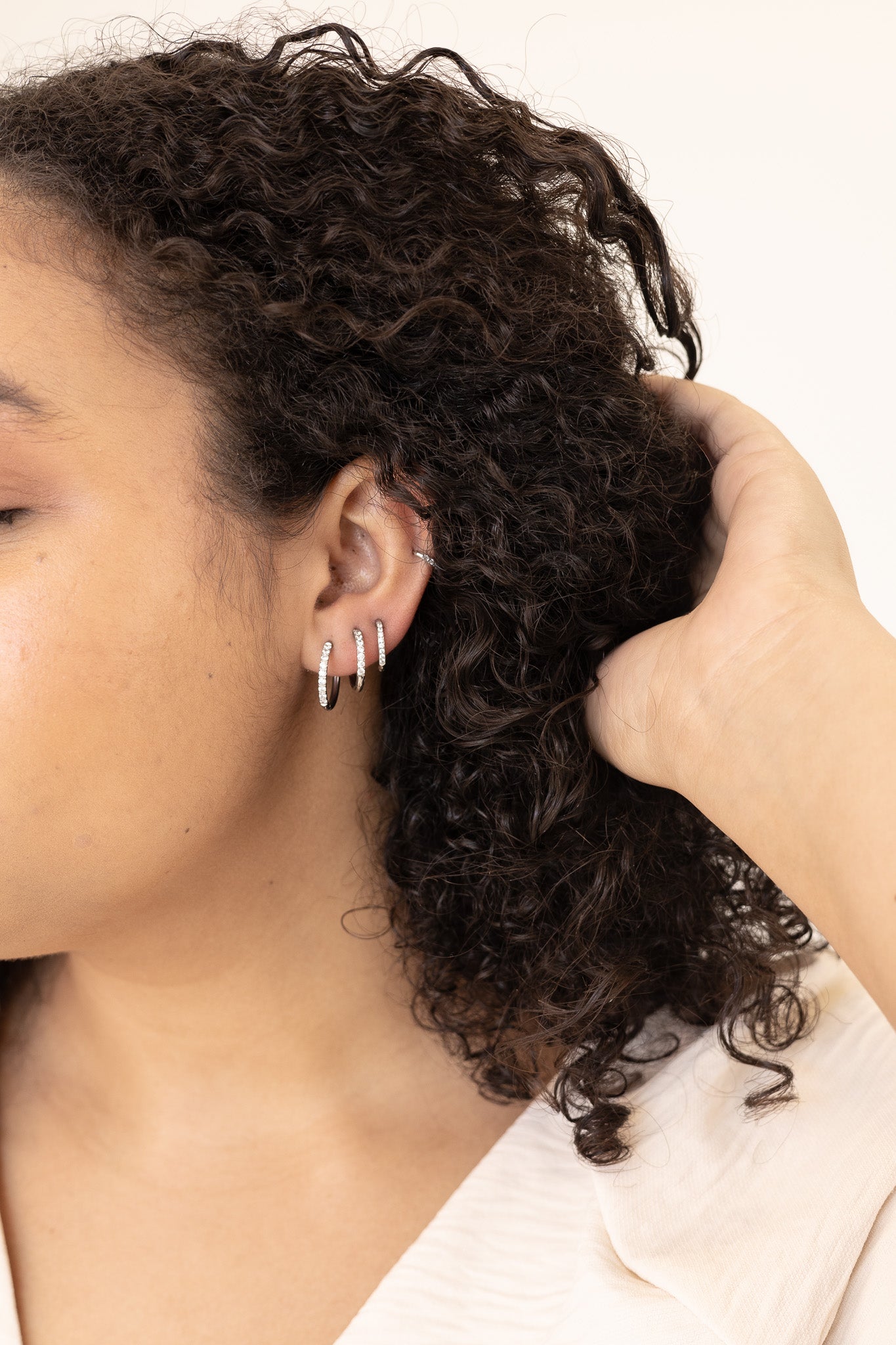 Meet the Mini Crystal Hoop--the most perfect, everyday hoop you will ever wear your whole life. This earring features high quality, cubic zirconia crystals, which add perfect sparkle! They're available in two different sizes. Both are super functional for everyday wear, while also being large enough to feel a little bit more noticeable and elevated. Because they are waterproof, they are tarnish-free--you can wear them in the pool, in the shower, in a workout class. They really are the perfect earring that you can leave in for days, weeks, or more!