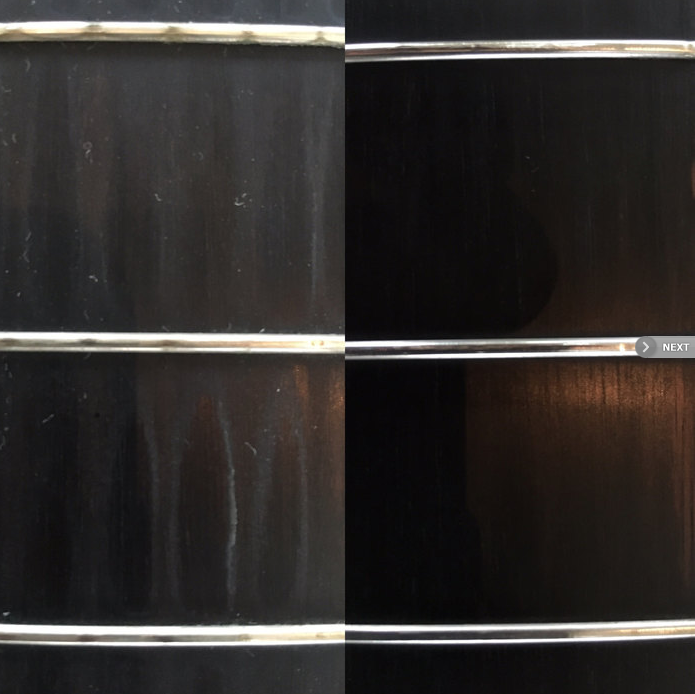 F-ONE gives wood its life back. F-ONE is formulated using a complex mixture of the finest ultra refined tree and seed oils to clean, condition & protect your fretboard/fingerboard. 100% free of any lemon oil extracts, waxes, petroleum distillates, silicone, and water. We chose not to use any lemon oil because it contains d-limonene, which is a strong solvent that is used to remove paint and glue. In addition, we believe the high acidity levels of lemon oil can dry out the fretboard over time and require more frequent fretboard care. F-ONE leaves your fretboard looking new, playing great and feeling smooth, never sticky or tacky. Our revolutionary formula penetrates & conditions the wood to dry fast and give it a new look for months. We use 100% naturally produced oils and is safe on all unfinished rosewood, ebony and maple fretboards. F-ONE oil is preferred by some of the most respected repair shops in the world.
