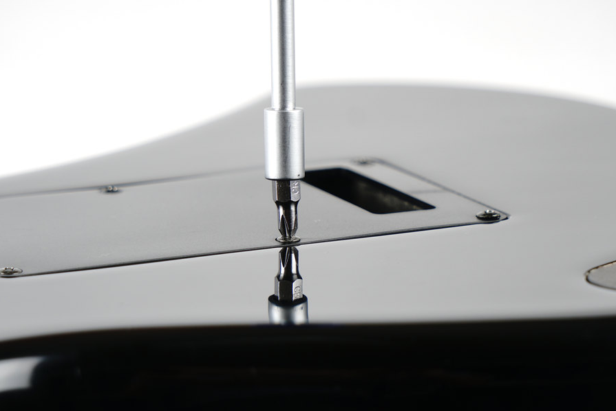 Forget lugging around screwdrivers, nut drivers, wrenches and Allen Keys or multiple bit sets in bulky cases, The Octopus 17 ‘n 1 Tech Tool can handle every job! MusicNomad’s patent pending, innovative design is the perfect tool for tightening or loosening screws and hex nuts on vital gear components like bridges, saddles, locking nuts, output jacks, control pots, tuning machine bushings and more. Just say no to metal....tools that is! Our ergonomic handle is made from strong ballistic nylon material that won’t scratch or ding your hardware and is engineered for the most popular Hex Wrench sizes : 10mm, 12mm, 14mm, 1/2” (2) & 7/16”. Our unique handle also holds the universal adapter giving you even more versatility. The metal universal adapter features a 7th 1/4” Hex Wrench for tightening or loosening hex nuts, in addition it securely holds our 10 pc screwdriver bit set. Our screwdriver bit set features Phillips & flat head bits along with 8 Allen Key bits (.050", 1/16", 3/32", 1.5mm, 2.0mm, 2.5mm ,3.0mm, 4.0mm) for nearly any kind of screw you may find on your gear. It tackles every job including precision adjustments to pieces like tremolo systems. Take out the universal adapter to utilize our 1/2” narrow profile Hex Wrench for tightening tough to reach sunken pots & tele cups. This little tool delivers big results and is a must have for every instrument case.