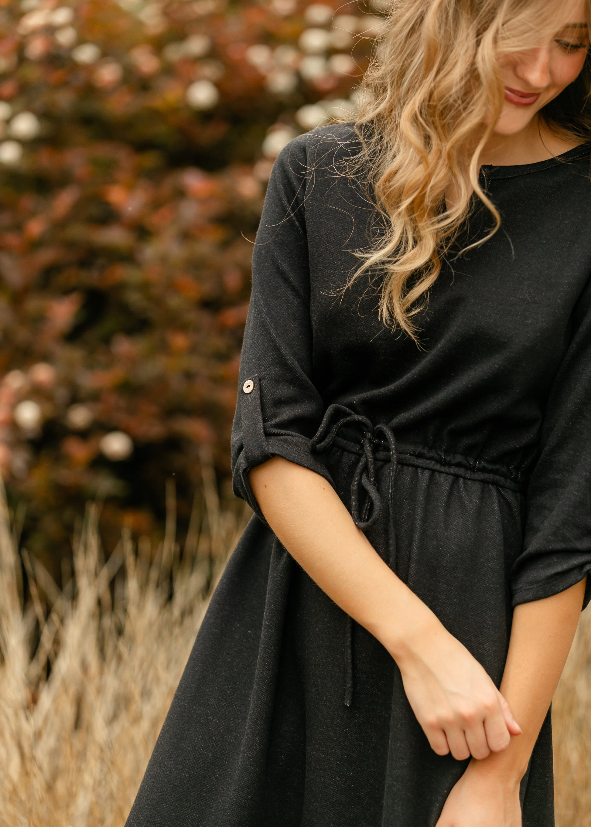 The Monica Cinched Waist Midi Dress is an Inherit Design made in a feminine cut with a flattering neckline. The skirt of the dress flows into a slight a-line and the best part is... there is no need to layer with this dress! There is an adjustable drawstring at the waist to tailor it for your personal style!