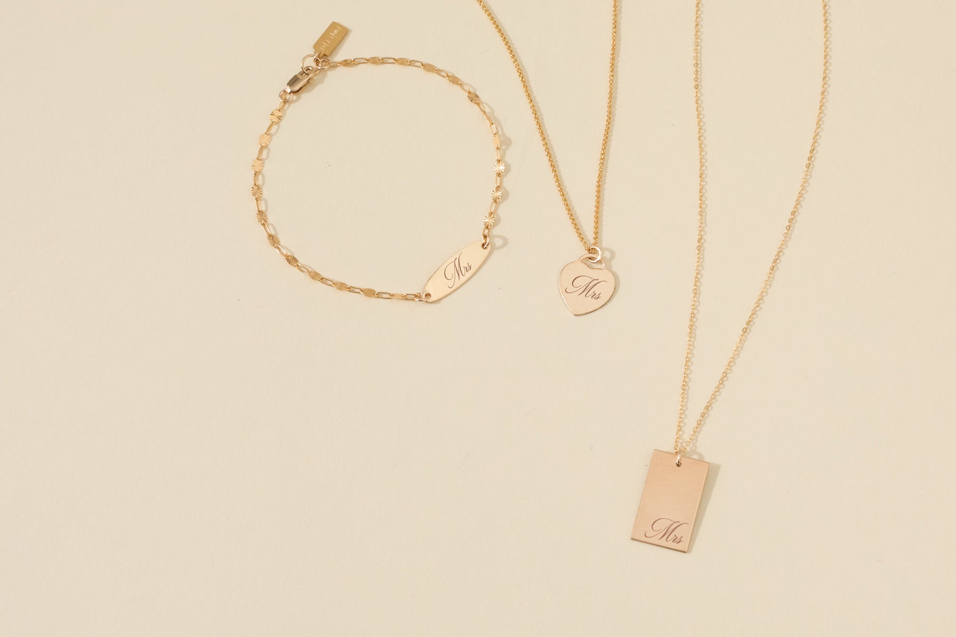 14k Gold Filled Laser Engraved Rectangle Pendant Necklace Mrs Stella