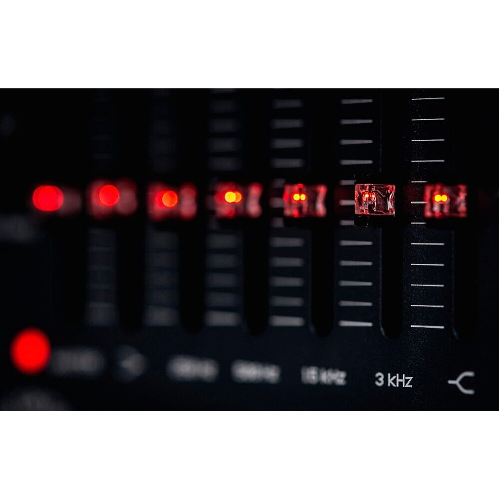 - 6-band graphic EQ with high- and low-shelving bands, 250Hz, 500Hz band, 1.5kHz band, 3kHz band, and master level control