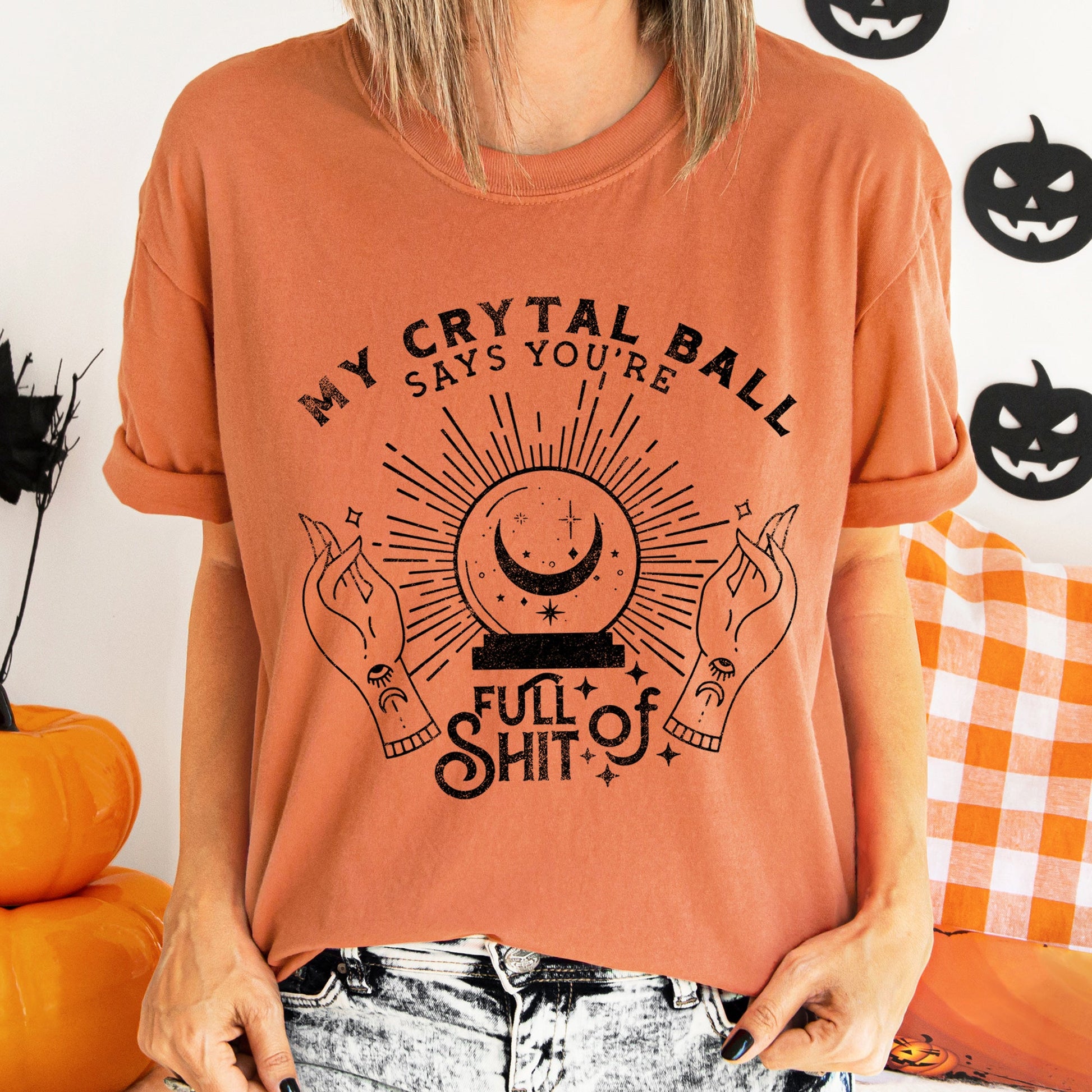 With its perfect blend of comfort and style, the My Crystal Ball Says You're Full Of Shit Retro Halloween Comfort Colors T-shirt is ideal for casual outings or social gatherings. Don’t miss out on adding this unique piece to your collection—order yours today and let your tee do the talking!