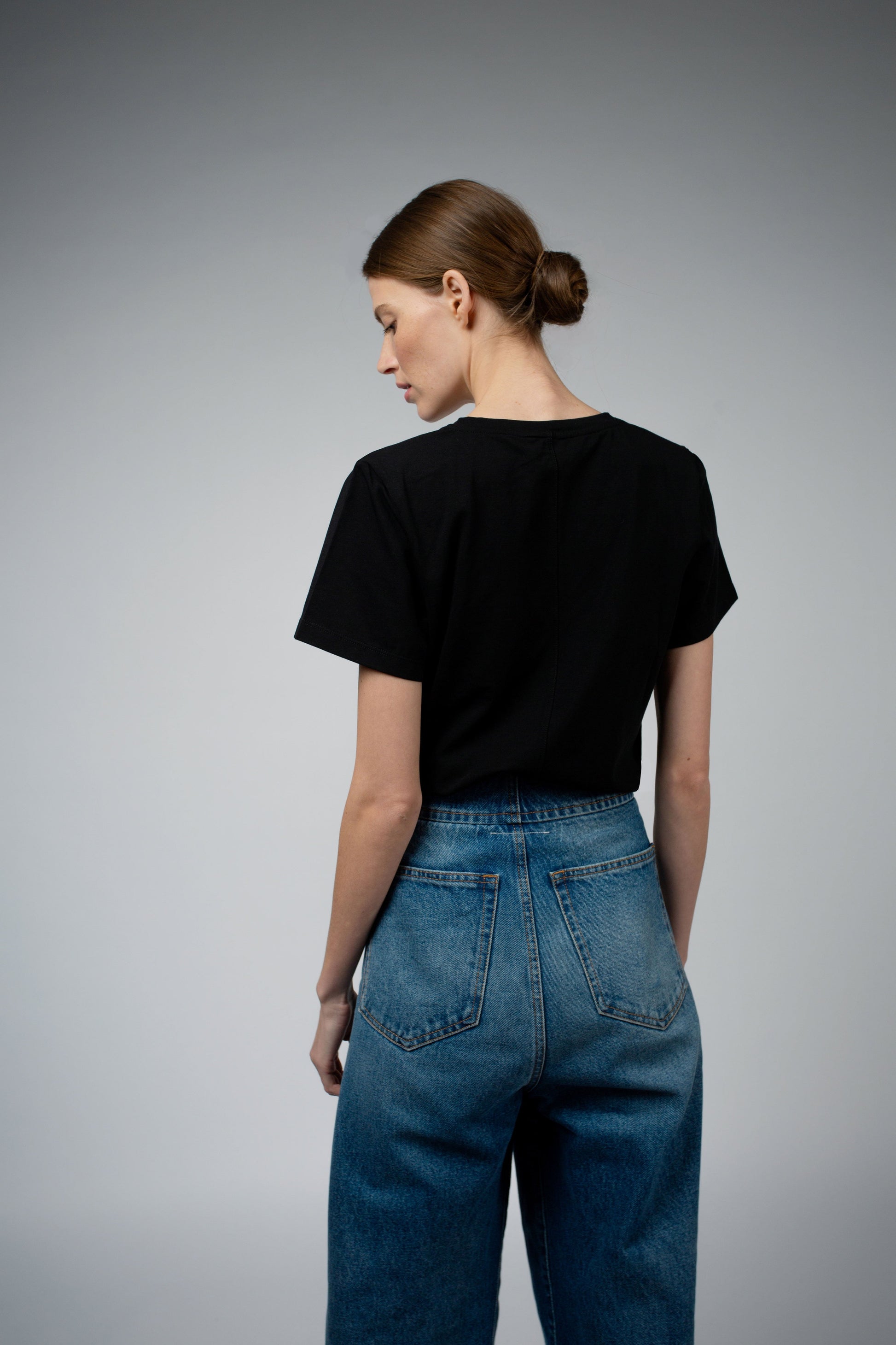 NORA ORGANIC COTTON V-NECK BODYSUIT IN BLACK