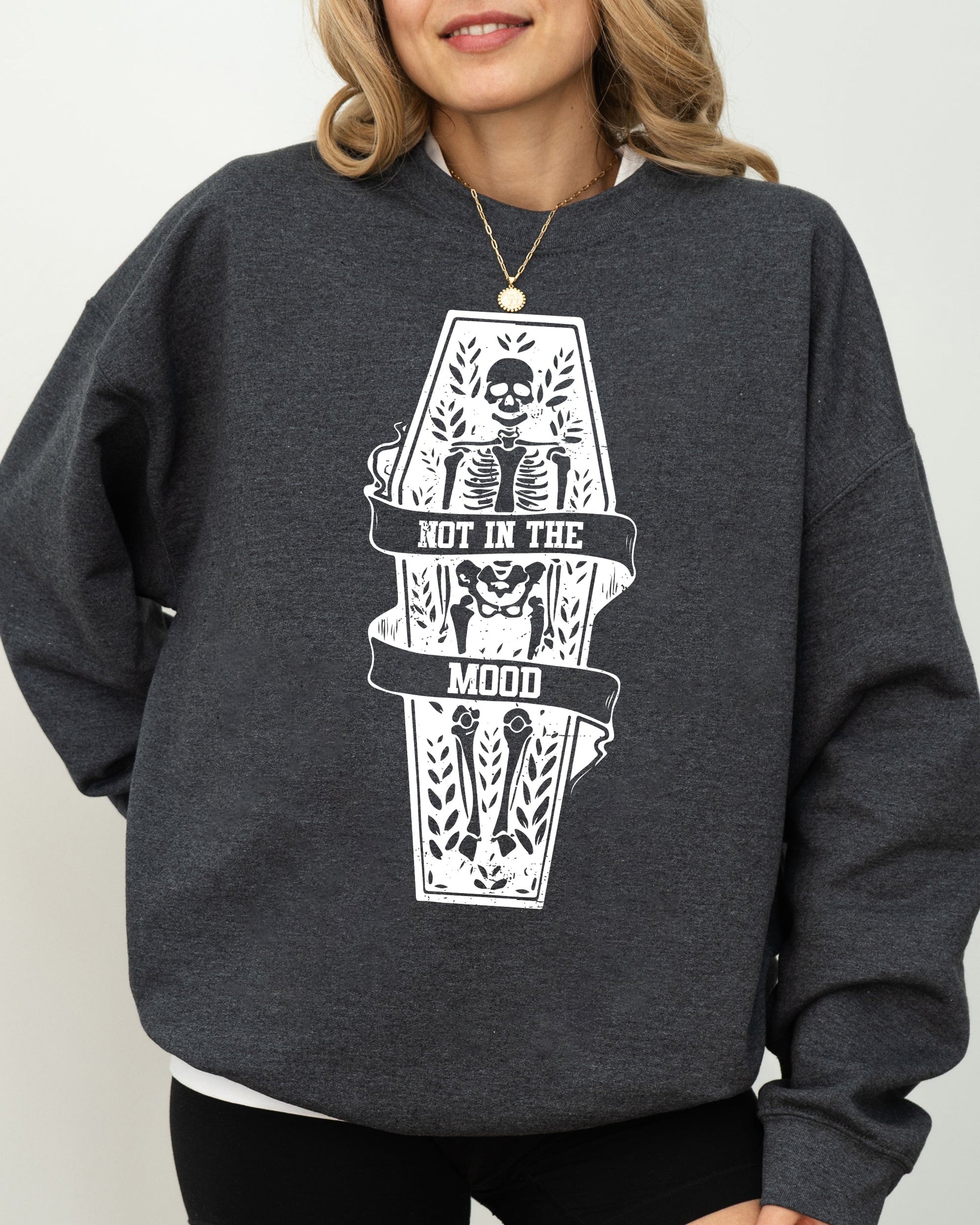 Not In The Mood, Coffin, Skull, Skeleton, Ghost, Western, Witch, Aesthetic, Meme, Halloween, Costume Sweatshirt