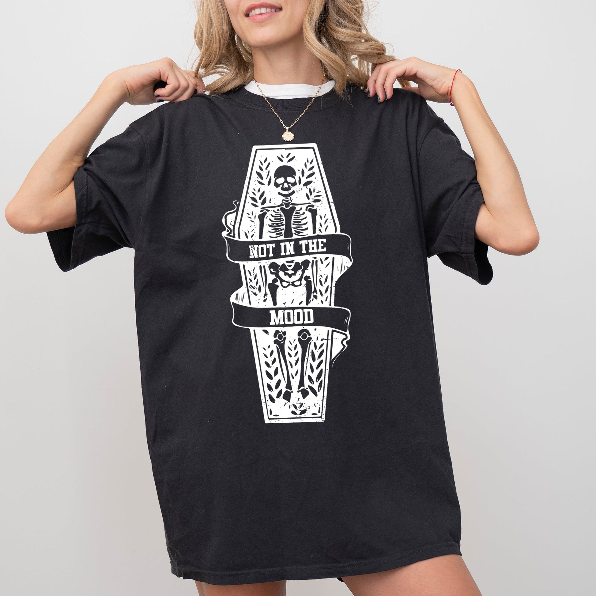 Not In The Mood, Coffin, Skull, Skeleton, Ghost, Western, Witch, Aesthetic, Meme, Halloween, Costume, Tshirt Comfort Colors T-Shirt
