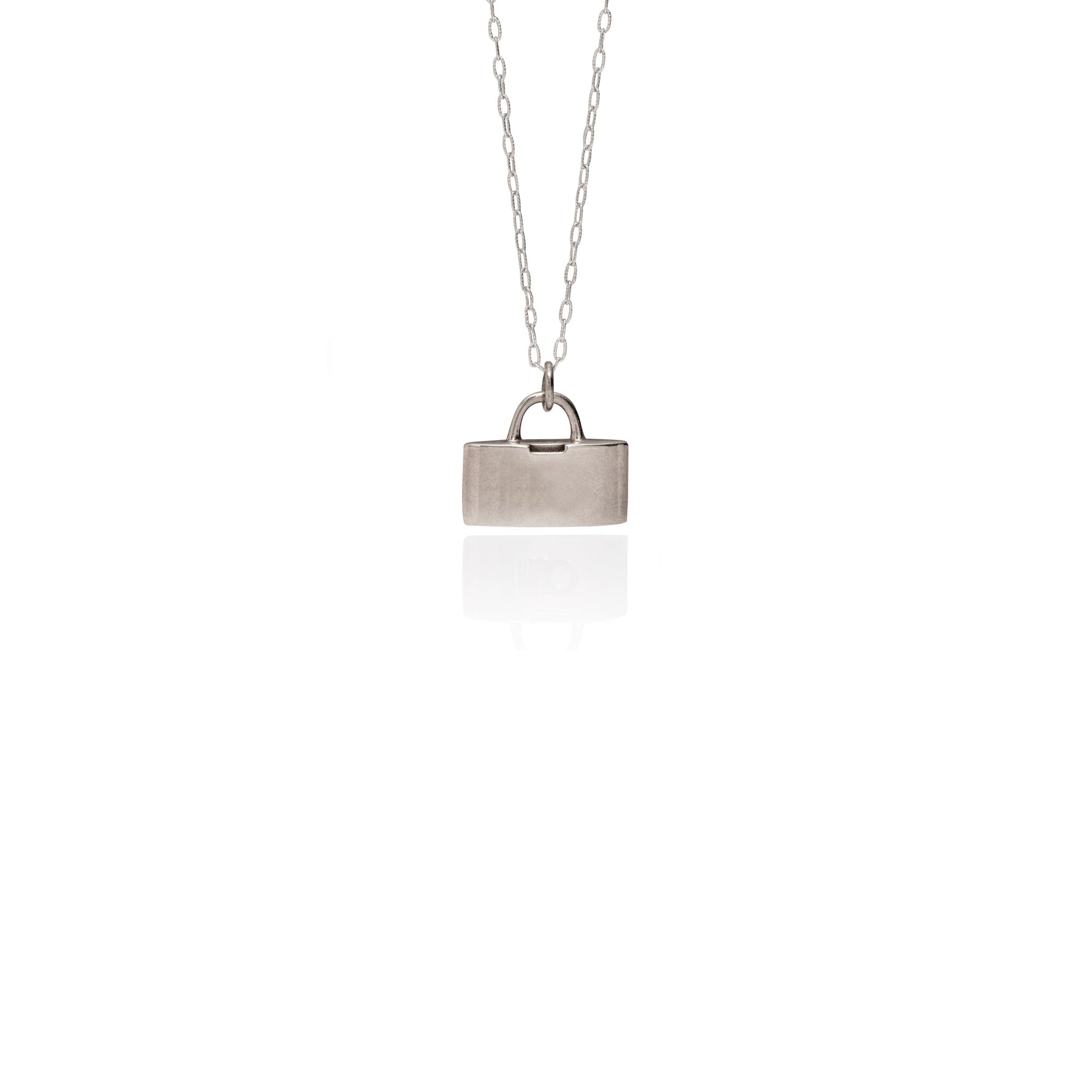 Introducing the Patt. necklace from Ninobrand. Crafted from sterling silver, this mini lock necklace features a 1.5 x 2.9mm sterling silver textured cable chain. The brand logo is engraved on the lock for a unique touch.