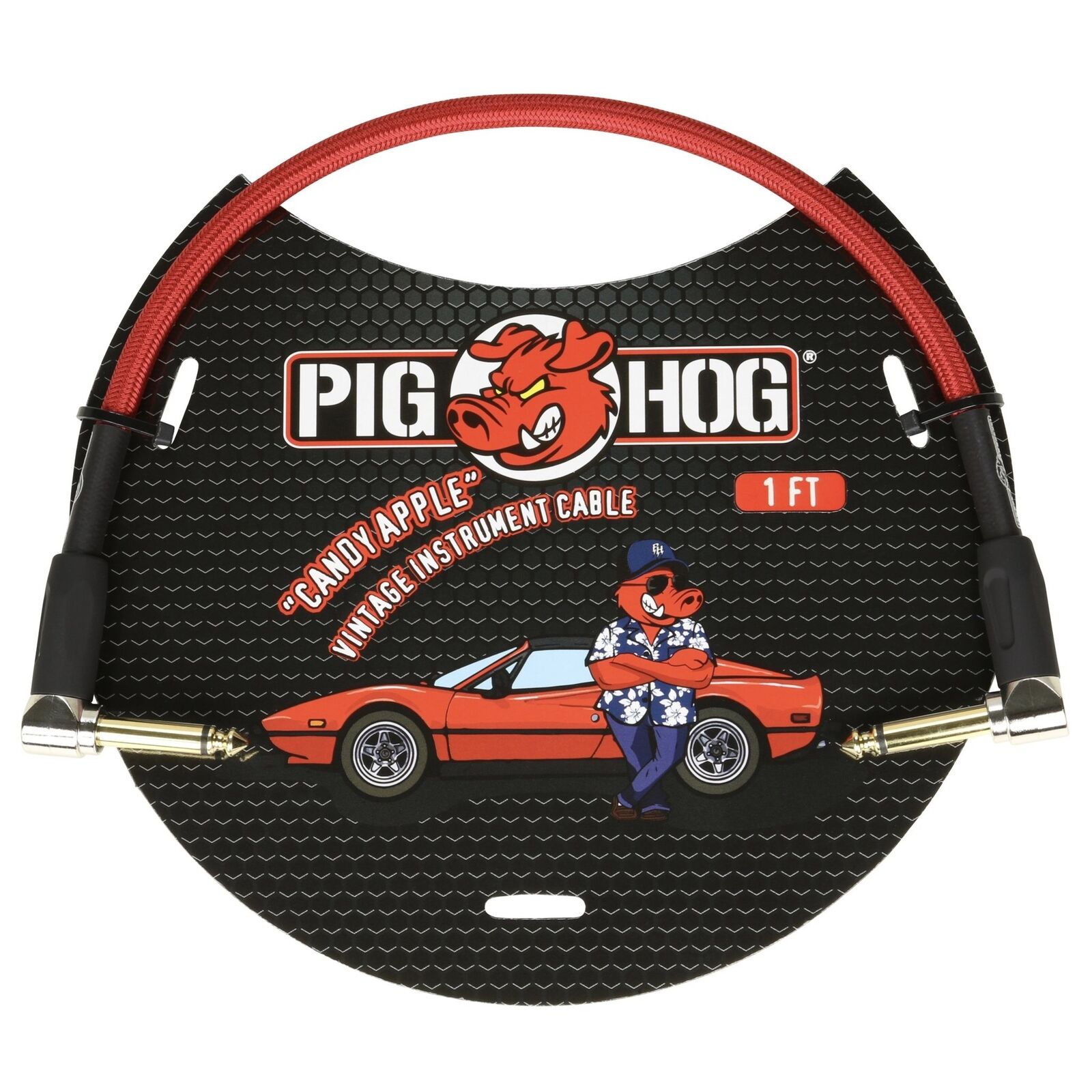 Pig Hog 1/4" Candy Apple Red Guitar 1ft Right-Angled Patch Cables 1/4" - New