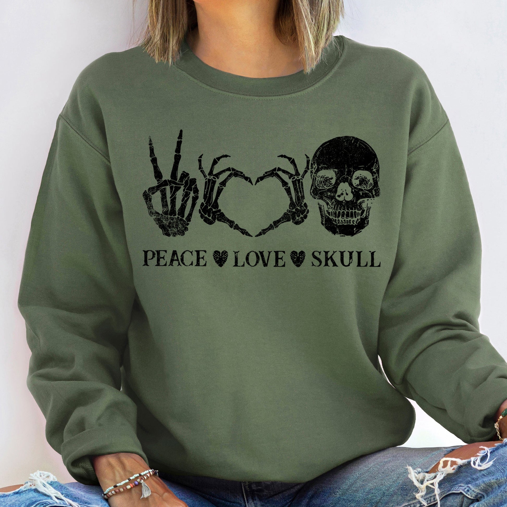 Machine washable and tumble dry low, the Peace Love Skull Vintage Halloween Sweatshirt is easy to maintain, allowing you more time to enjoy your favorite spooky festivities without worry.