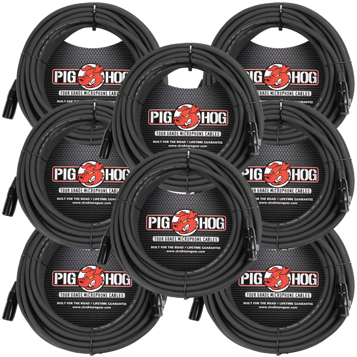 8 Pack Pig Hog PHM50 XLR High Performance 8mm Microphone Cable, 50 Ft - NEW