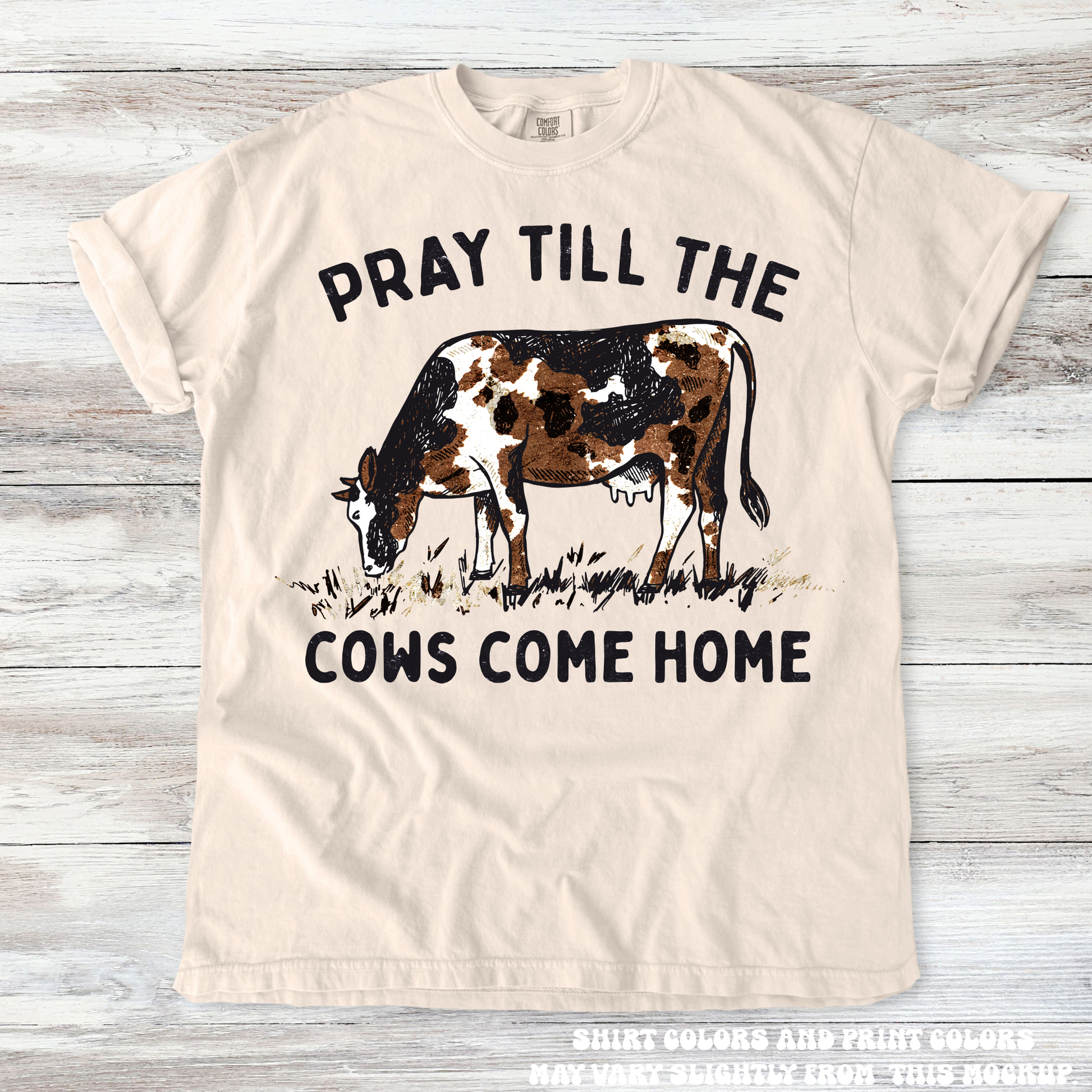 Pray Till The Cows Come Home Western Tee - Printed On Comfort Colors