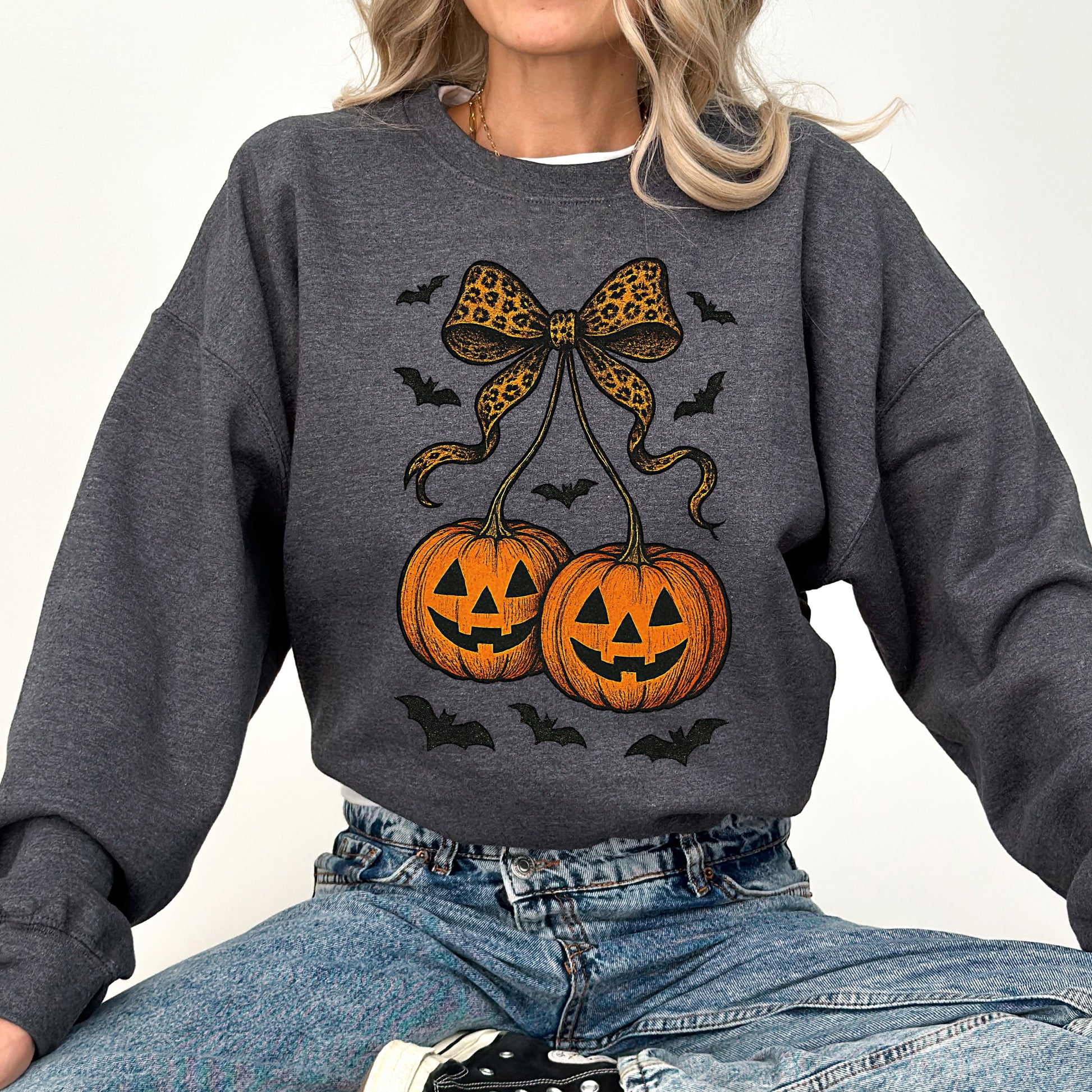 Pumpkin Coquette, Bow, Halloween, Retro, Vintage, Spooky, Costume, Fall, Graphic Sweatshirt