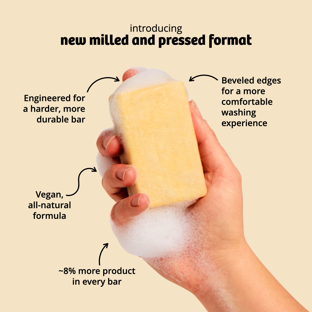 ☀️ NEW FORMAT! Learn more about our milled and pressed bar soaps here. ☀️