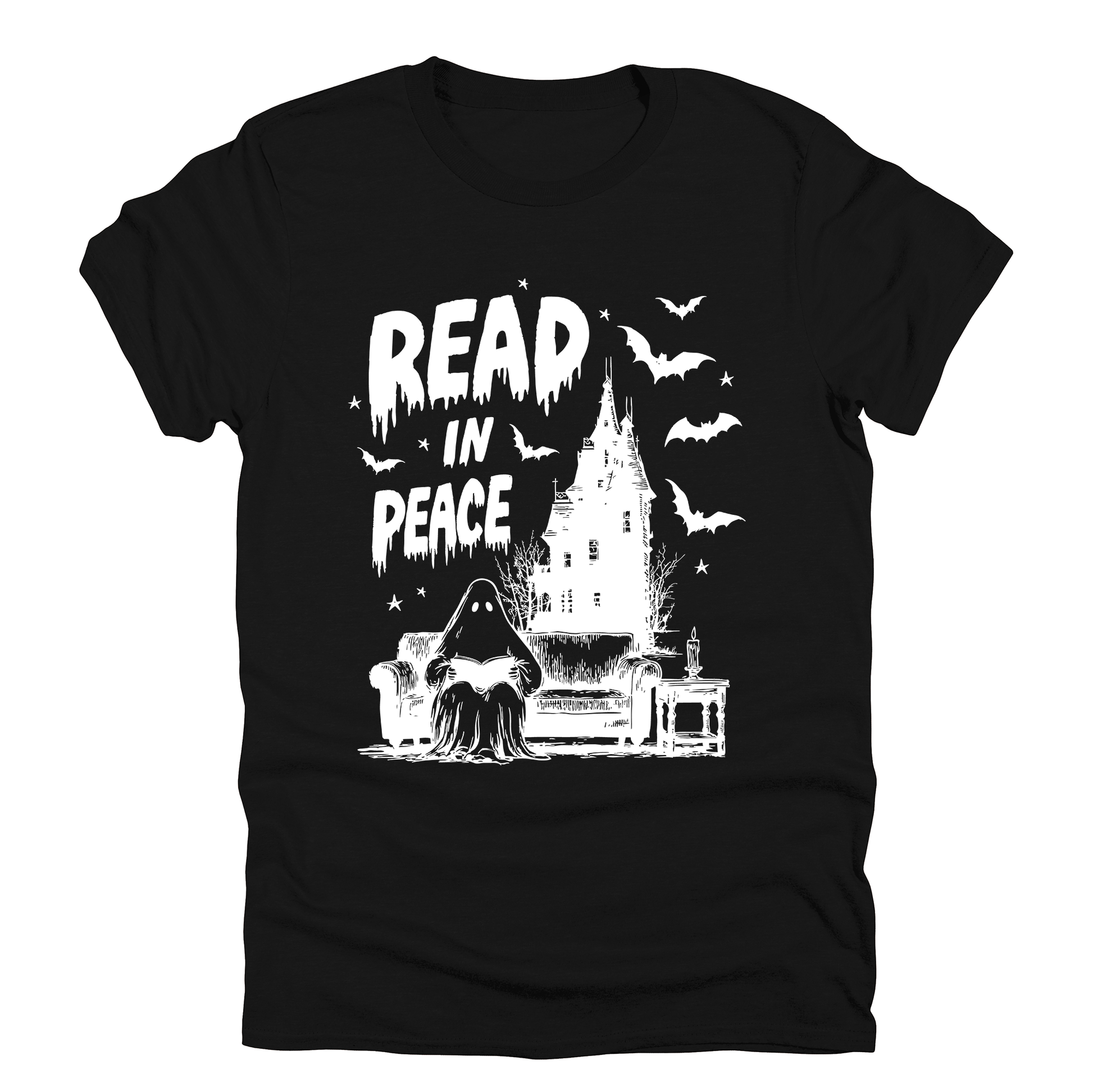 Read In Peace, Ghost, Haunted, Halloween, Spooky, Bookish, Library, Booktok, Trending Graphic Tee, Black Tshirt