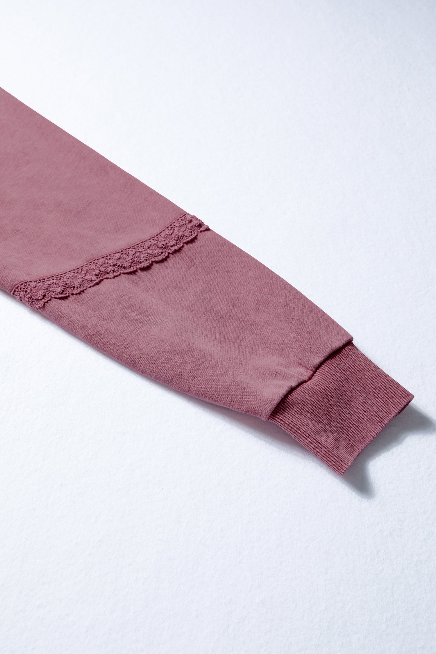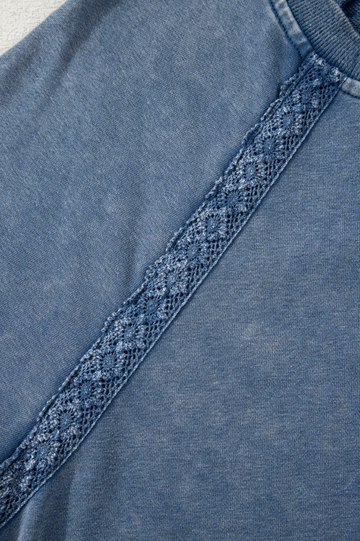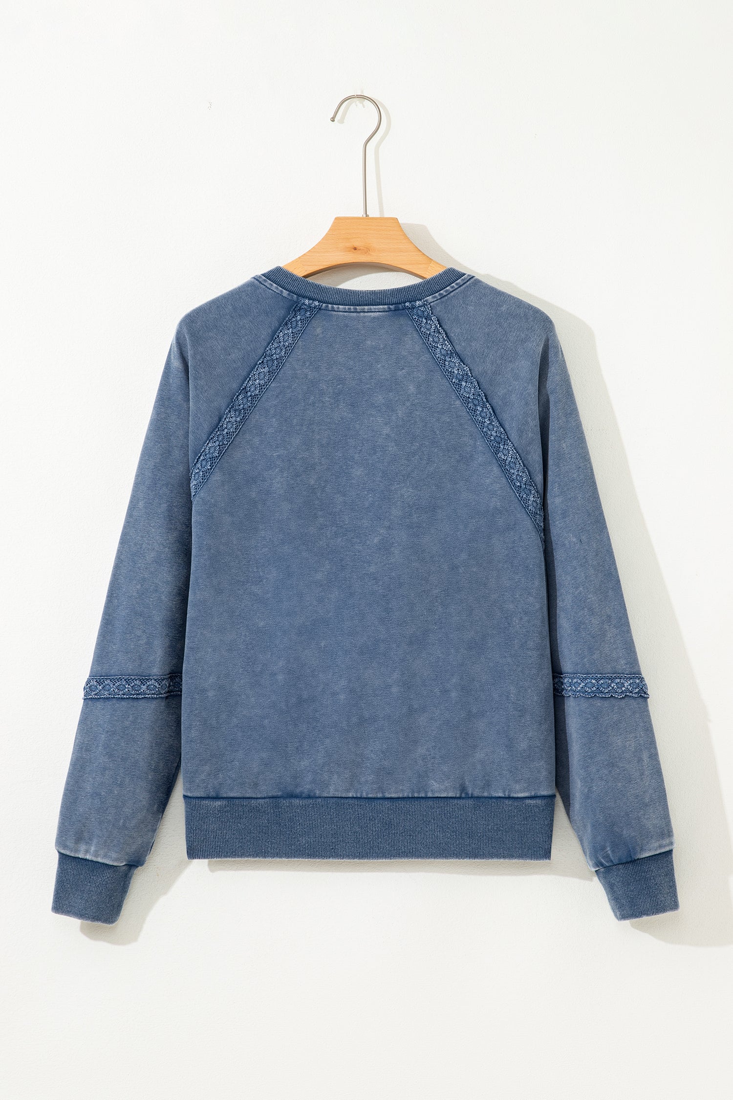 - Lace patchwork adds a feminine and decorative touch to the sweatshirt