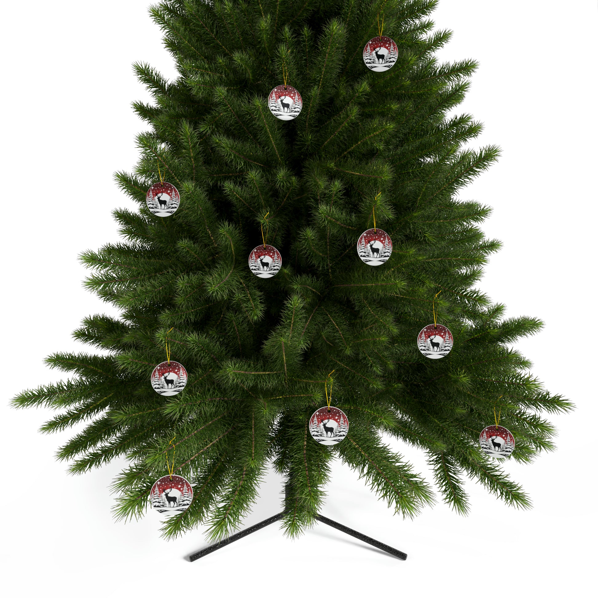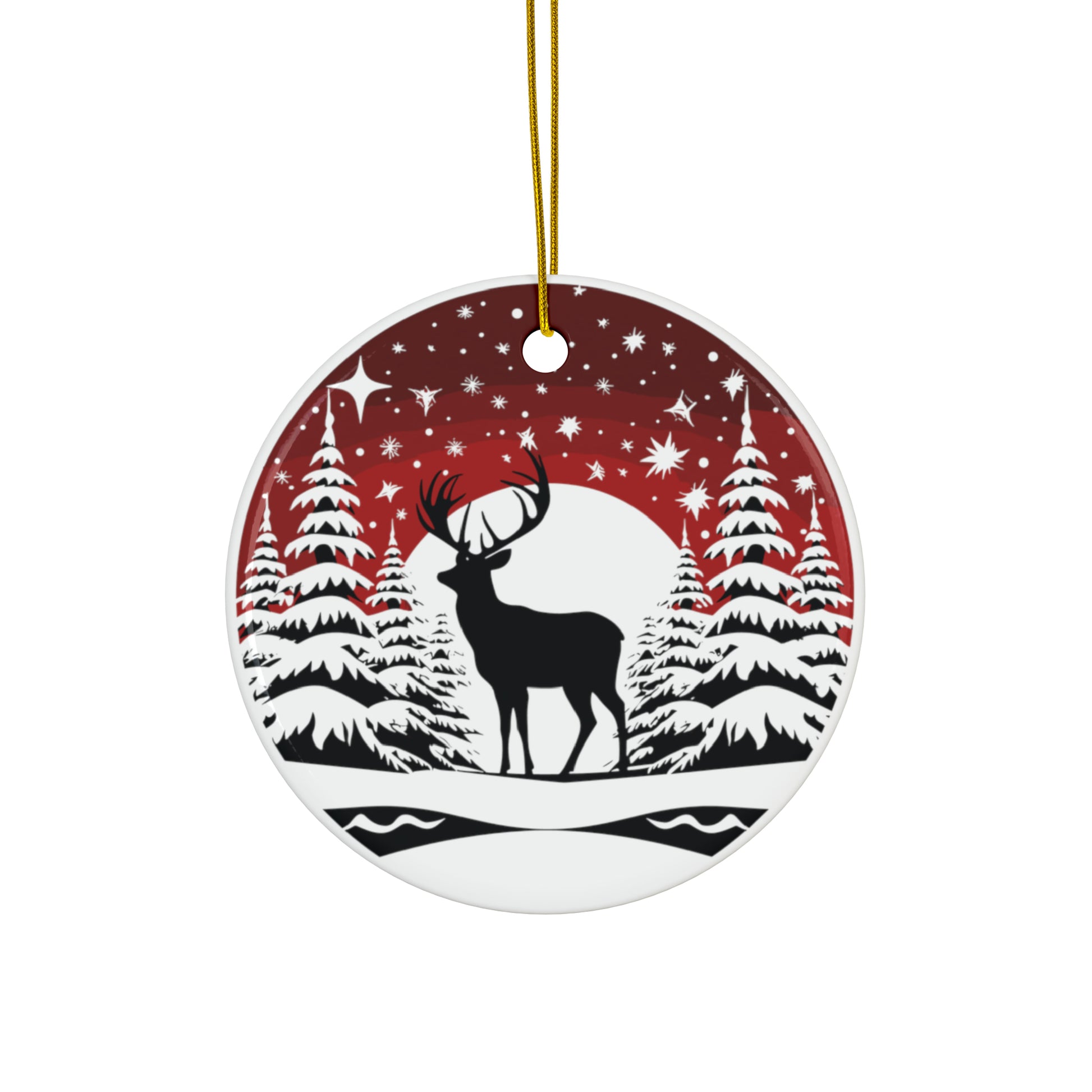 Reindeer with Black Canada maple leaf and crystal snow Fallin Christmas Ceramic Ornaments (1pc, 3pcs, 5pcs, 10pcs)