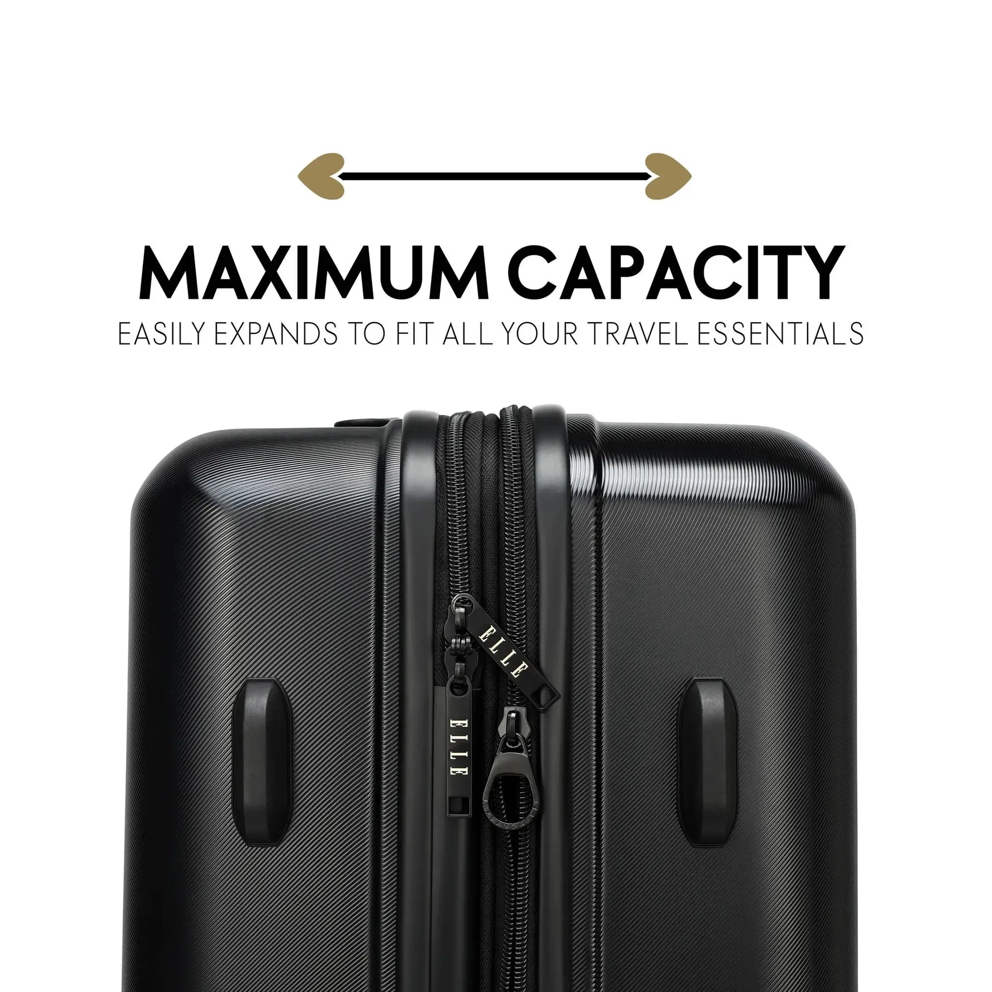 Elevate your travels with the complete ELLE Roamer Expedition 6 piece travel set. This deluxe six-piece set includes the durable Expedition expandable polycarbonate 3-piece luggage set, stylish 24L Roamer weekender bag, versatile 22L Roamer backpack, and compact 2.8L Roamer crossbody bag. Designed to blend lasting quality, sophisticated style, and exceptional organization, it's ideal for business trips, leisure travel, or daily adventures.