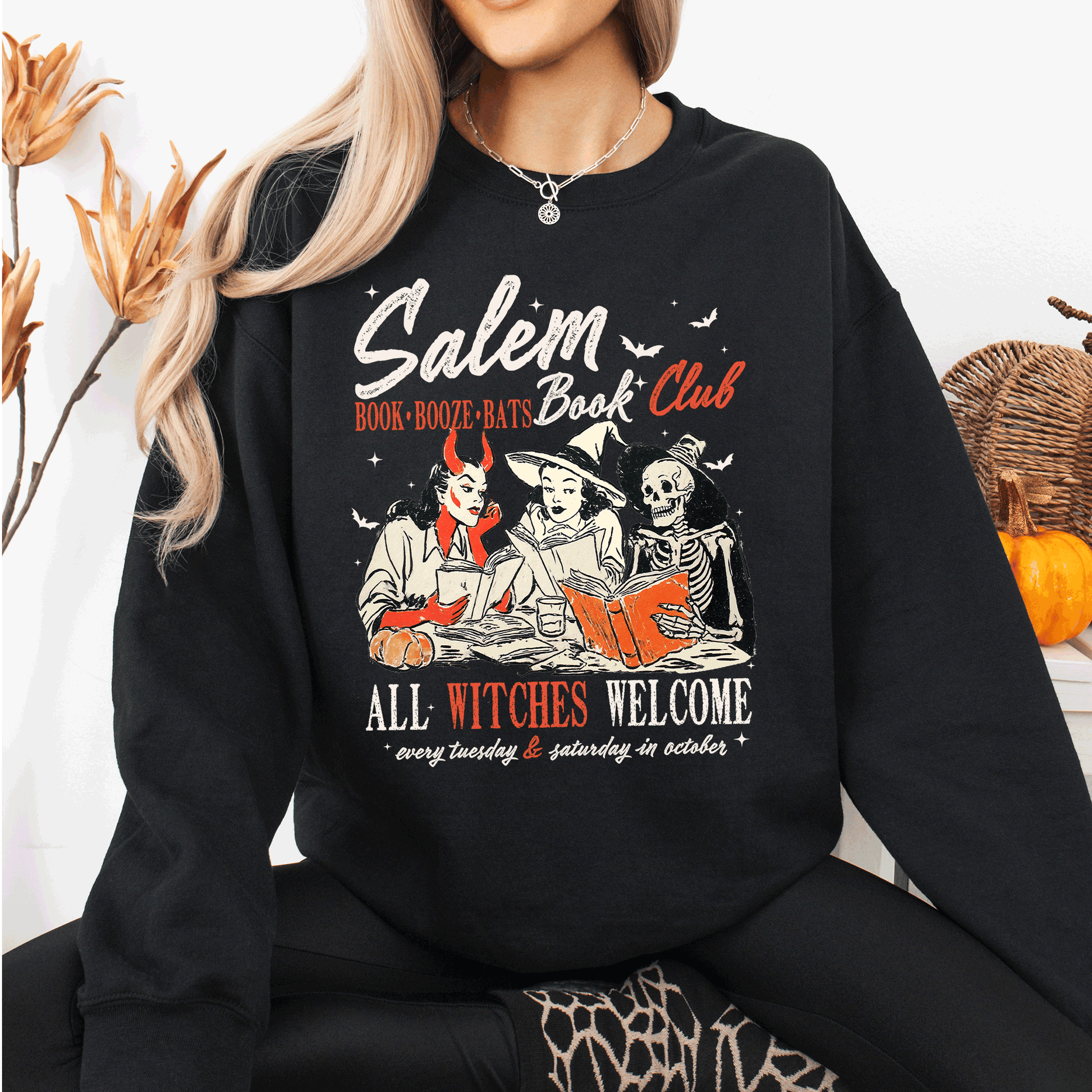 Join the trend this Halloween and let everyone know that all witches are welcome at your book club. With its vibrant print and comfortable fit, the Salem Book Club Sweatshirt is not just clothing; it's a statement. Celebrate the season and your love for literature in style!