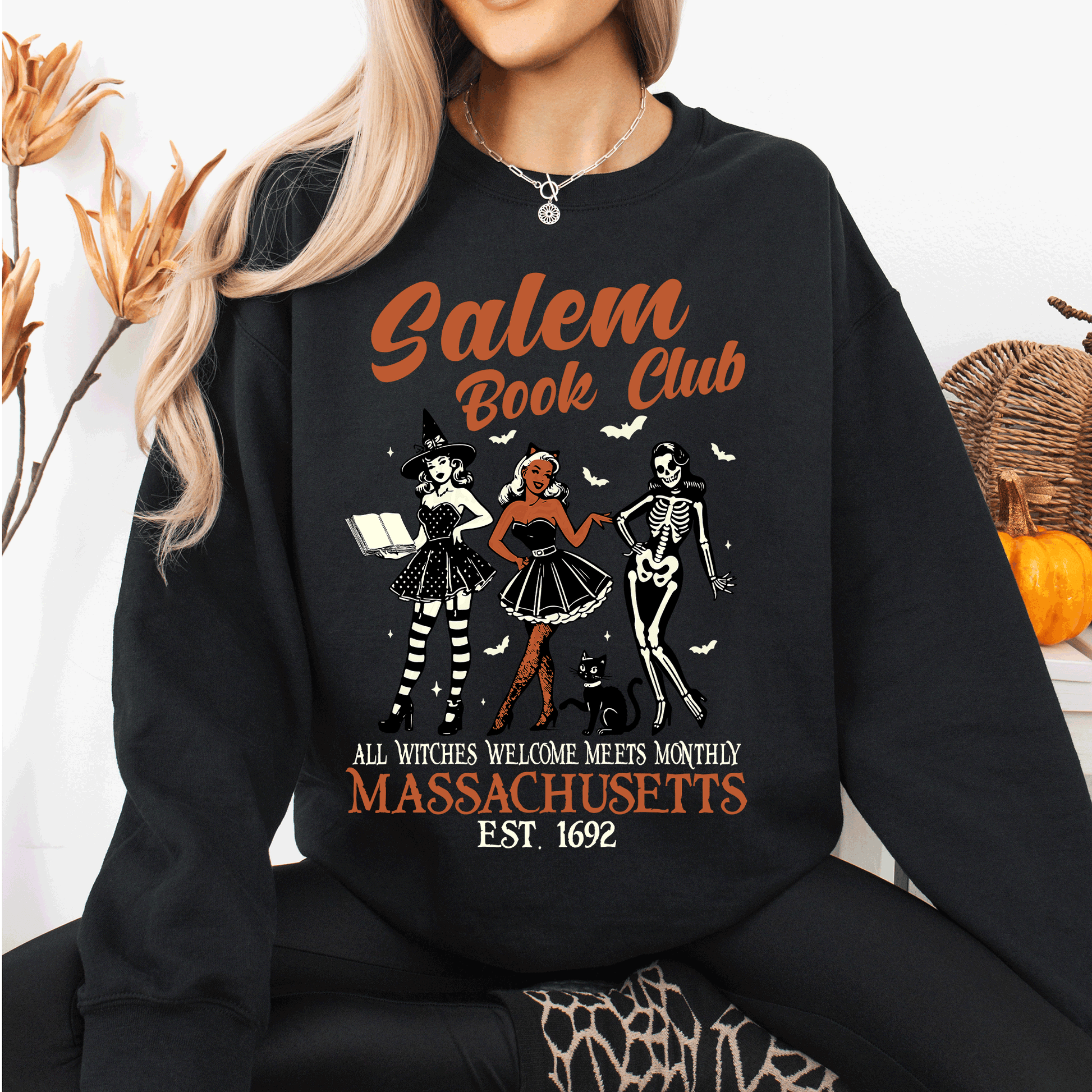 Whether you're attending a Halloween party or enjoying a cozy night in with a gripping novel, the Salem Book Club Sweatshirt is your go-to choice. Elevate your fall wardrobe with a piece that embodies both comfort and a love for reading.