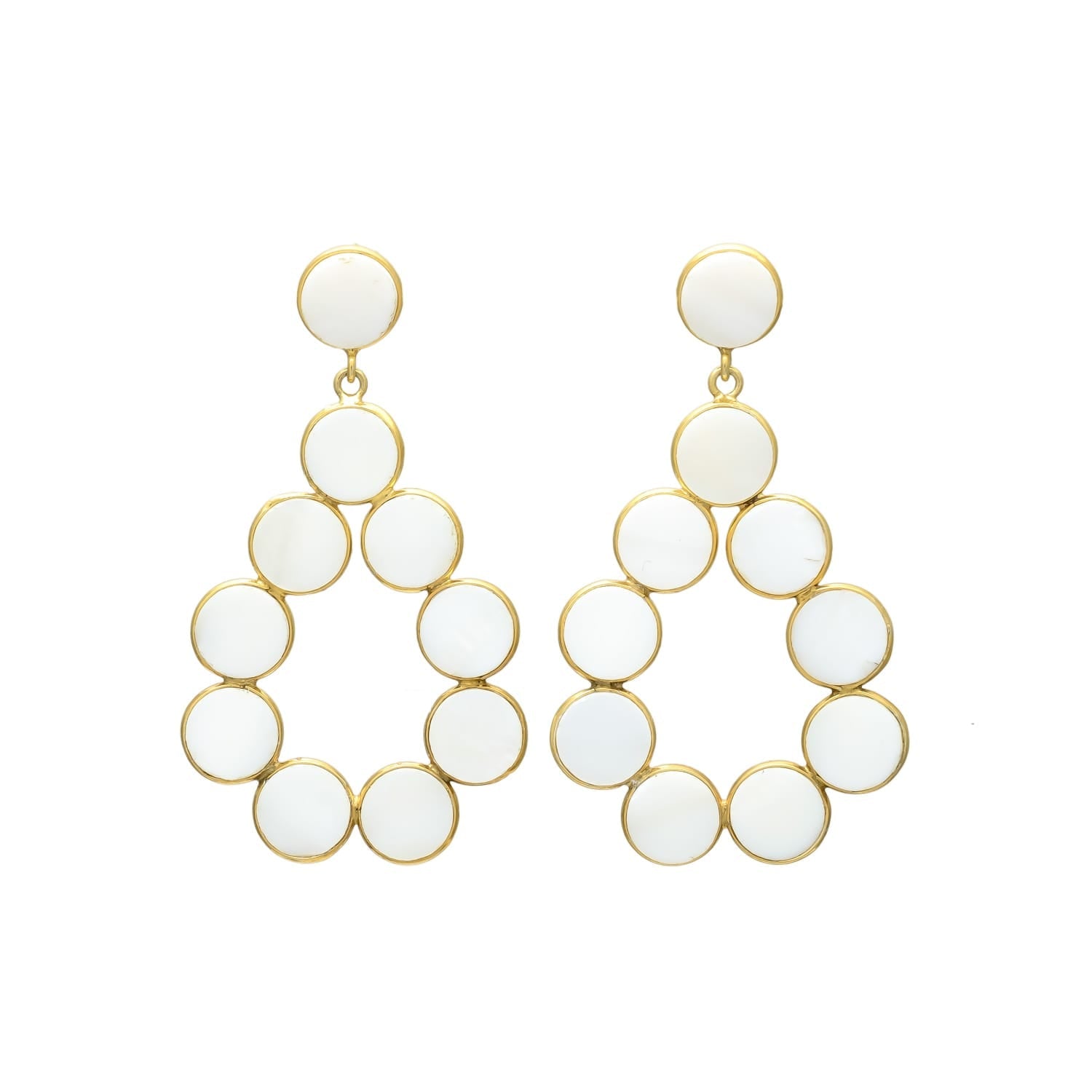 Like salt on a margarita rim, the Salt and Sol Drop Earrings are the perfect finishing touch for every look. Featuring a post-back stud with a dangling open teardrop-shaped design, this statement earring is dotted with natural pearl shell set into 18K gold-plated sterling silver. Add a taste of summer to every outfit when you pair these pearl earrings with the Anemone's Charm Ring and the Sunbeam Cuff.