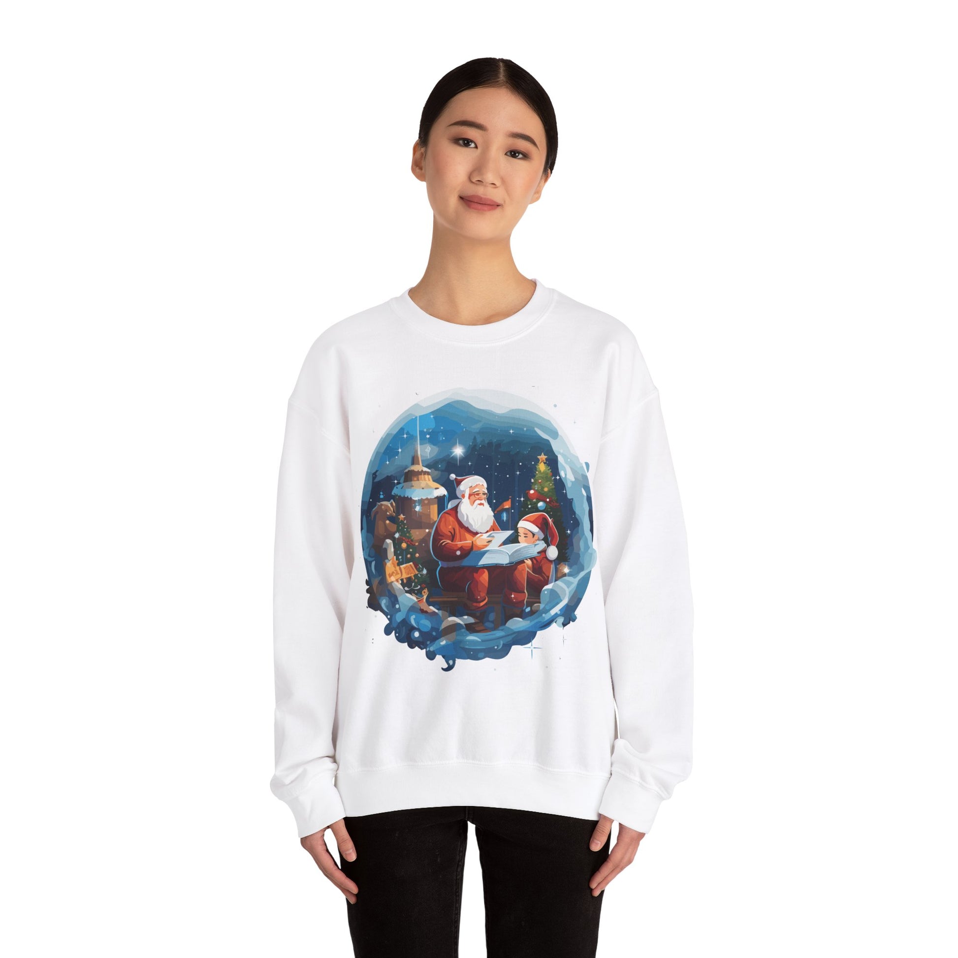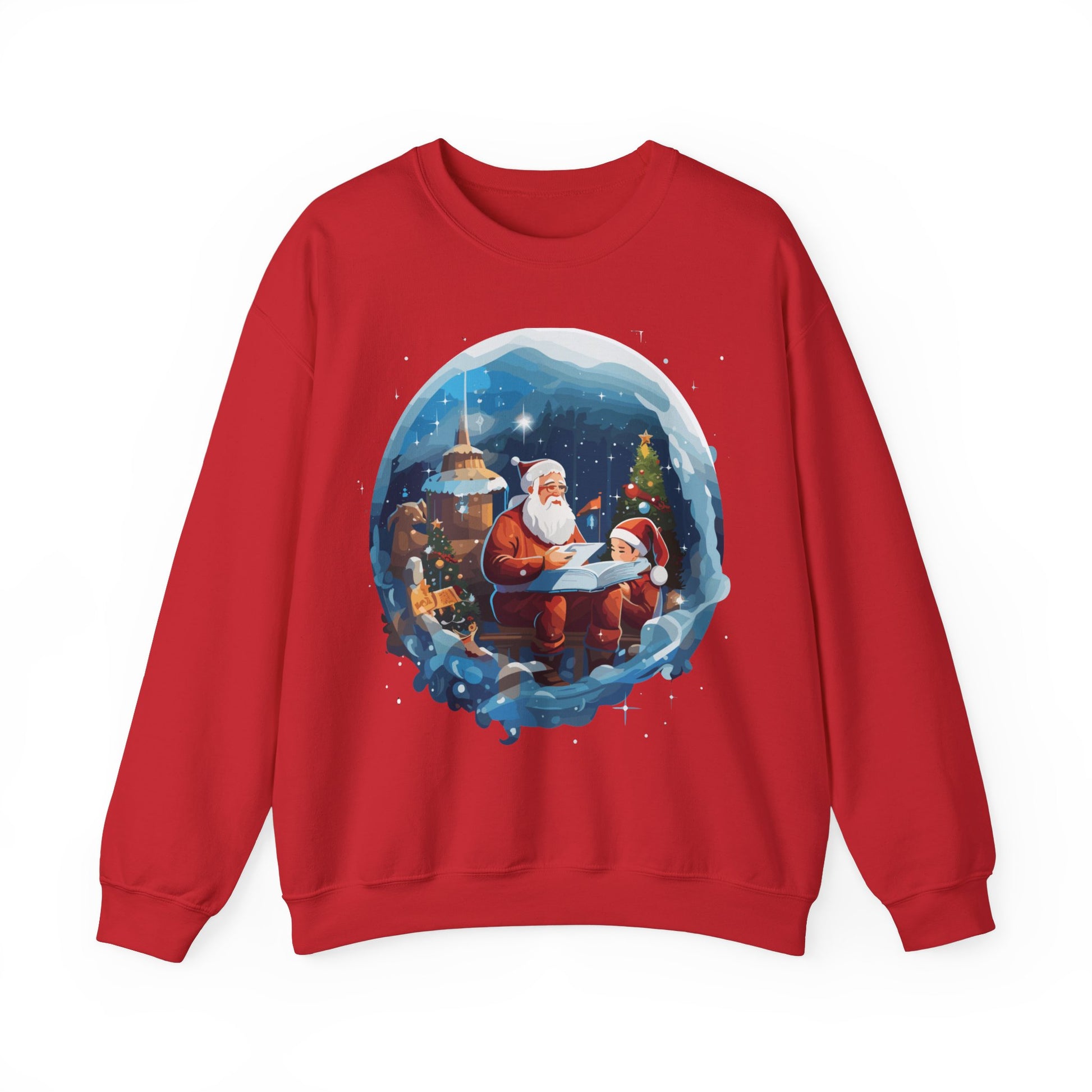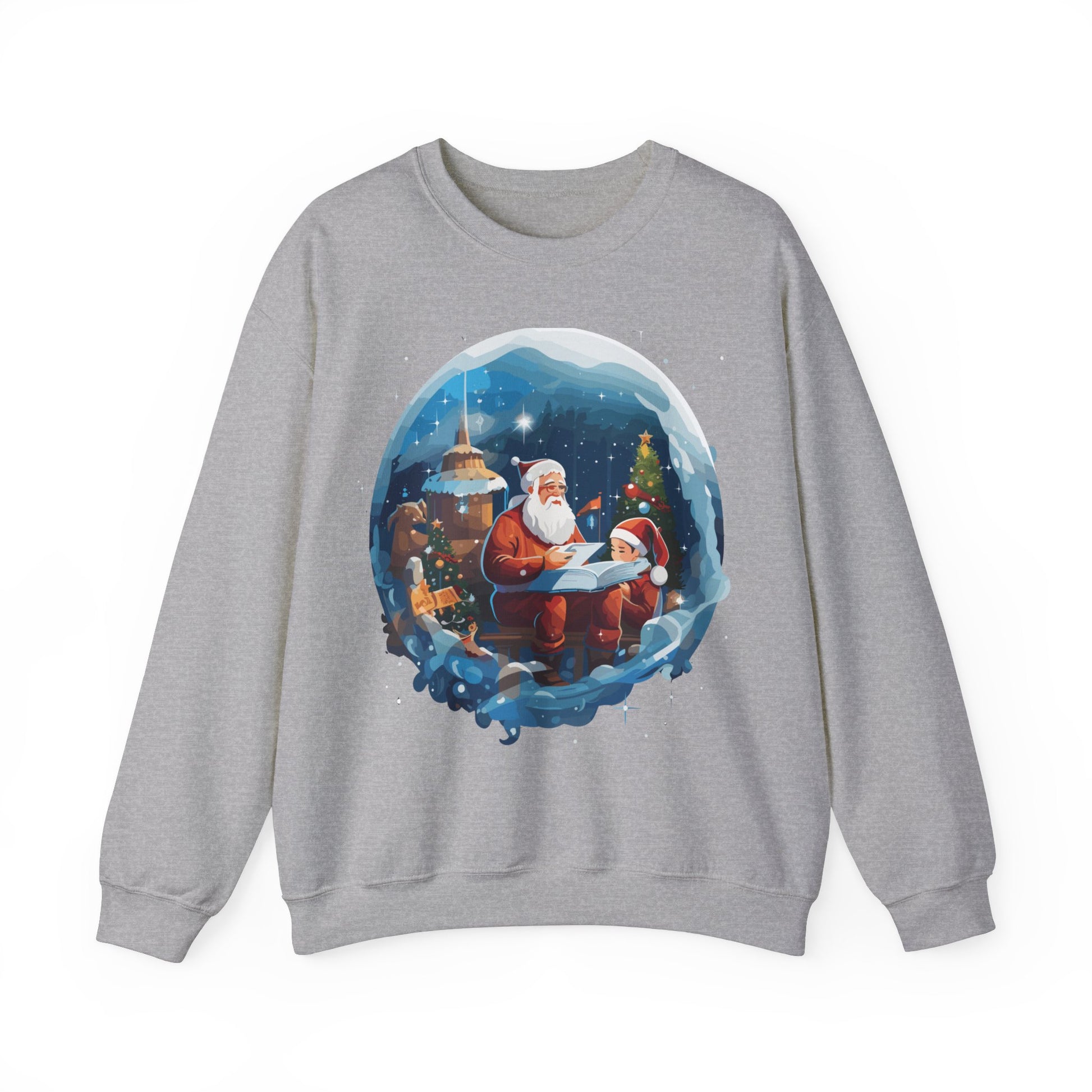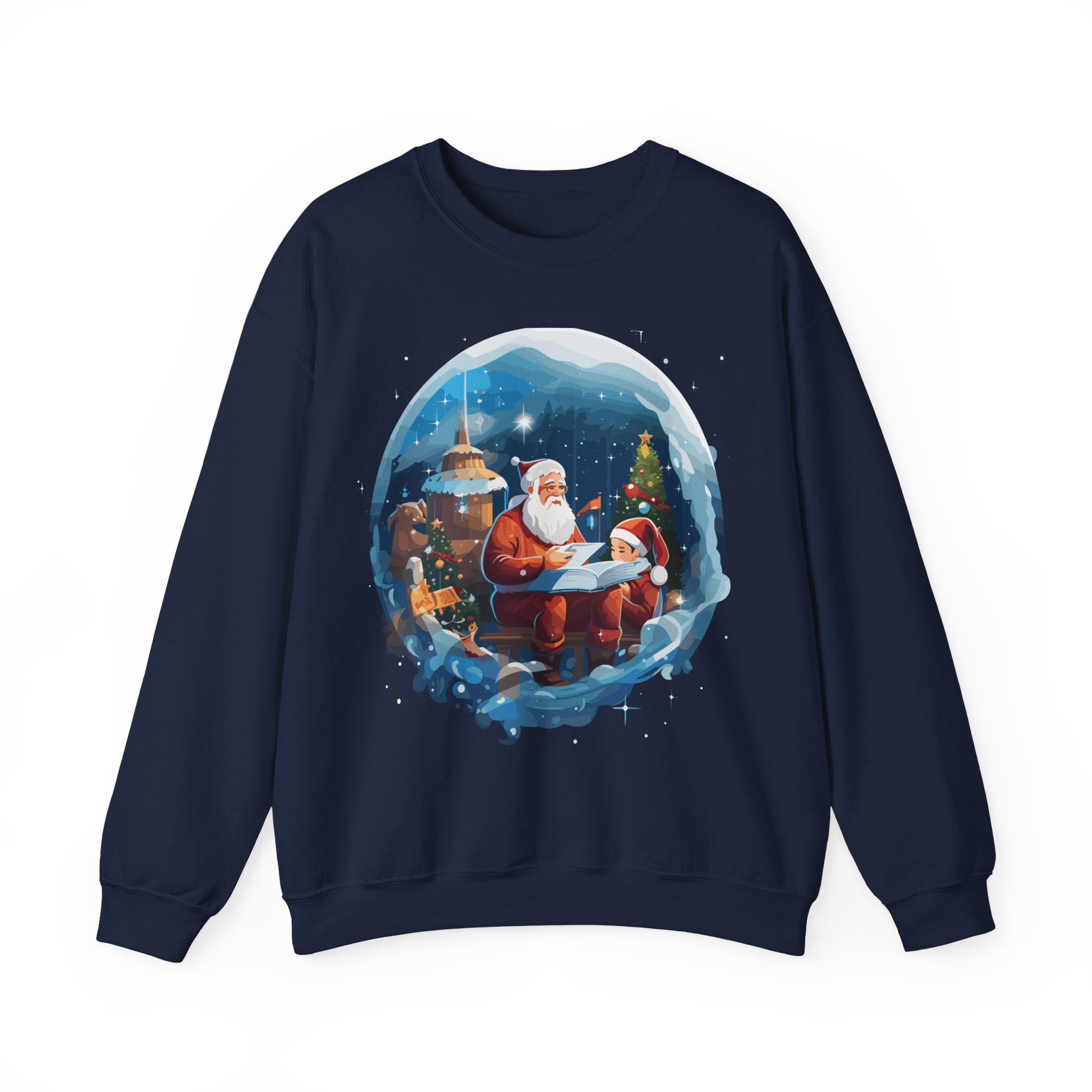 Santa reading book with people in space - Christmas Shirt, Holiday Xmas Shirt, Merry Christmas, Holiday Xmas, Unisex Xmas Shirt, Christmas Sweatshirt, Christmas Apparel, Xmas Celebration Shirt, Matching Family Outfits, Christmas Gifts