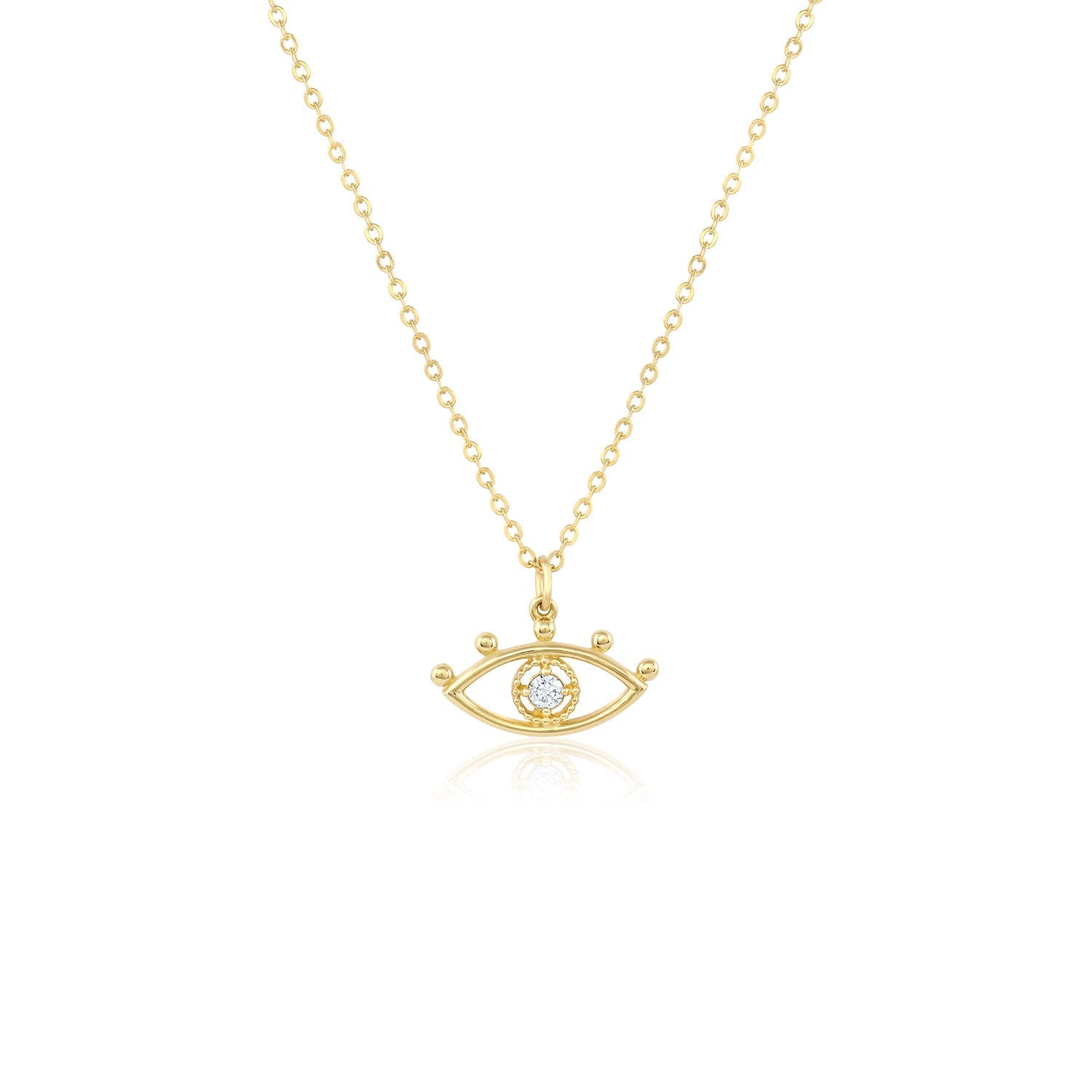 necklace gold diamond evil eye charm necklace 14k yellow gold necklace champagne diamond necklace fine jewelry necklace 16 inch gold necklace Set & Stones necklace