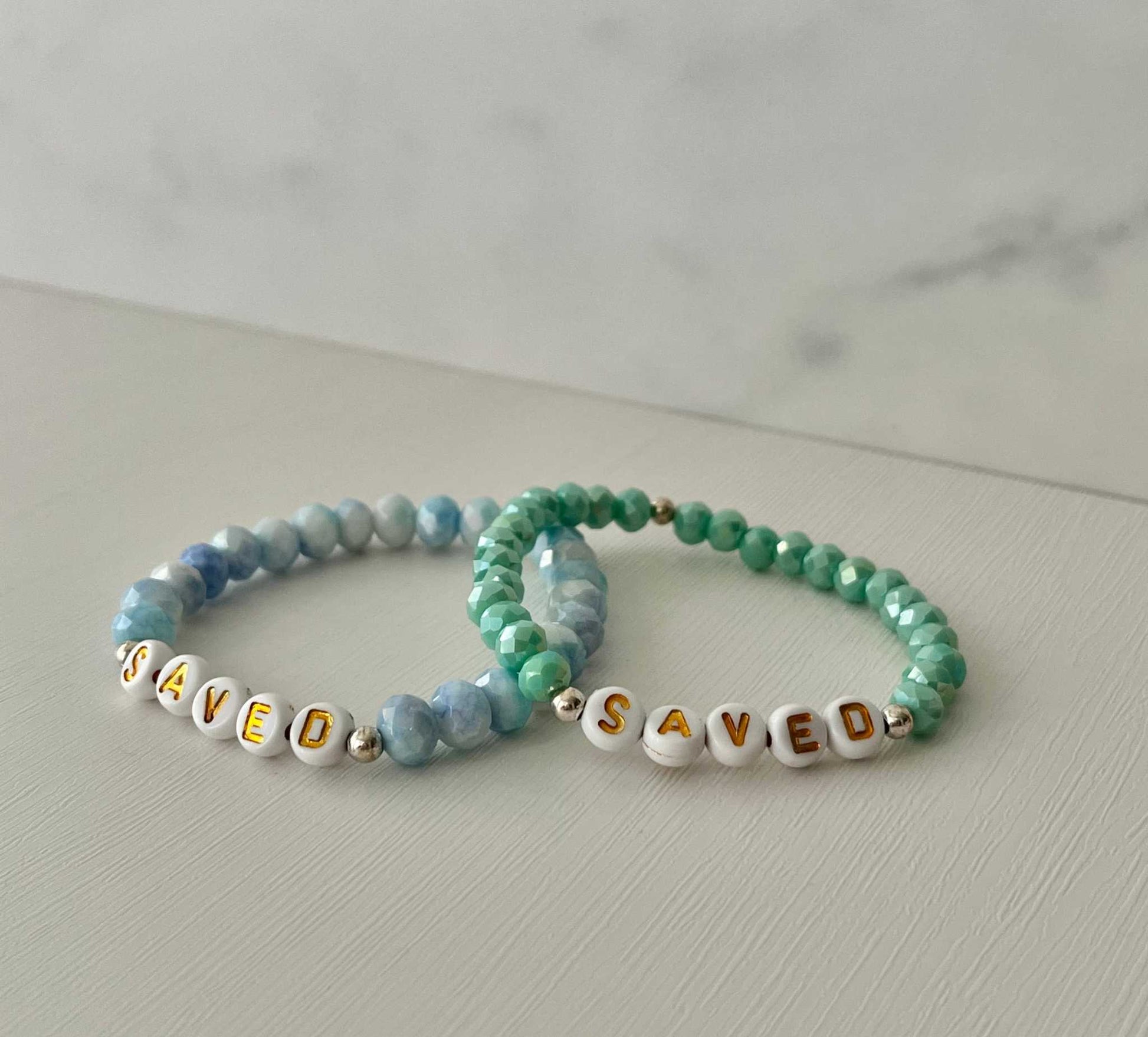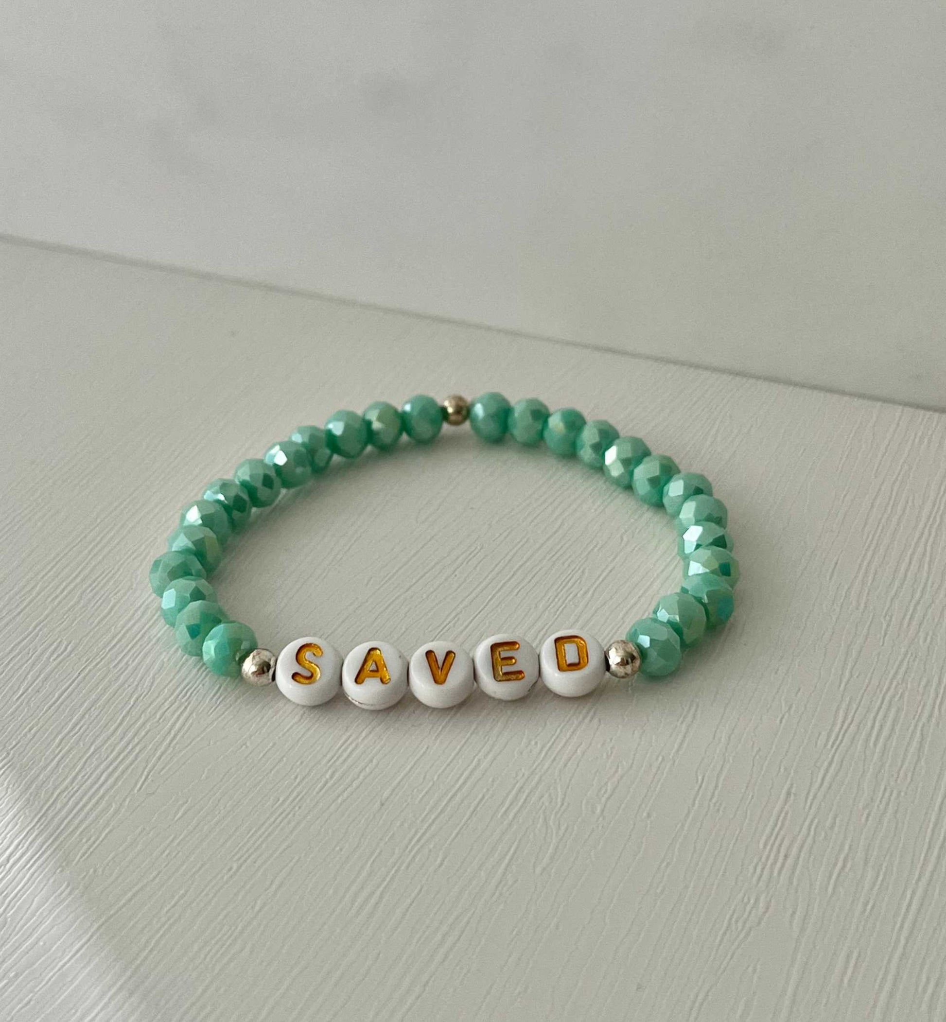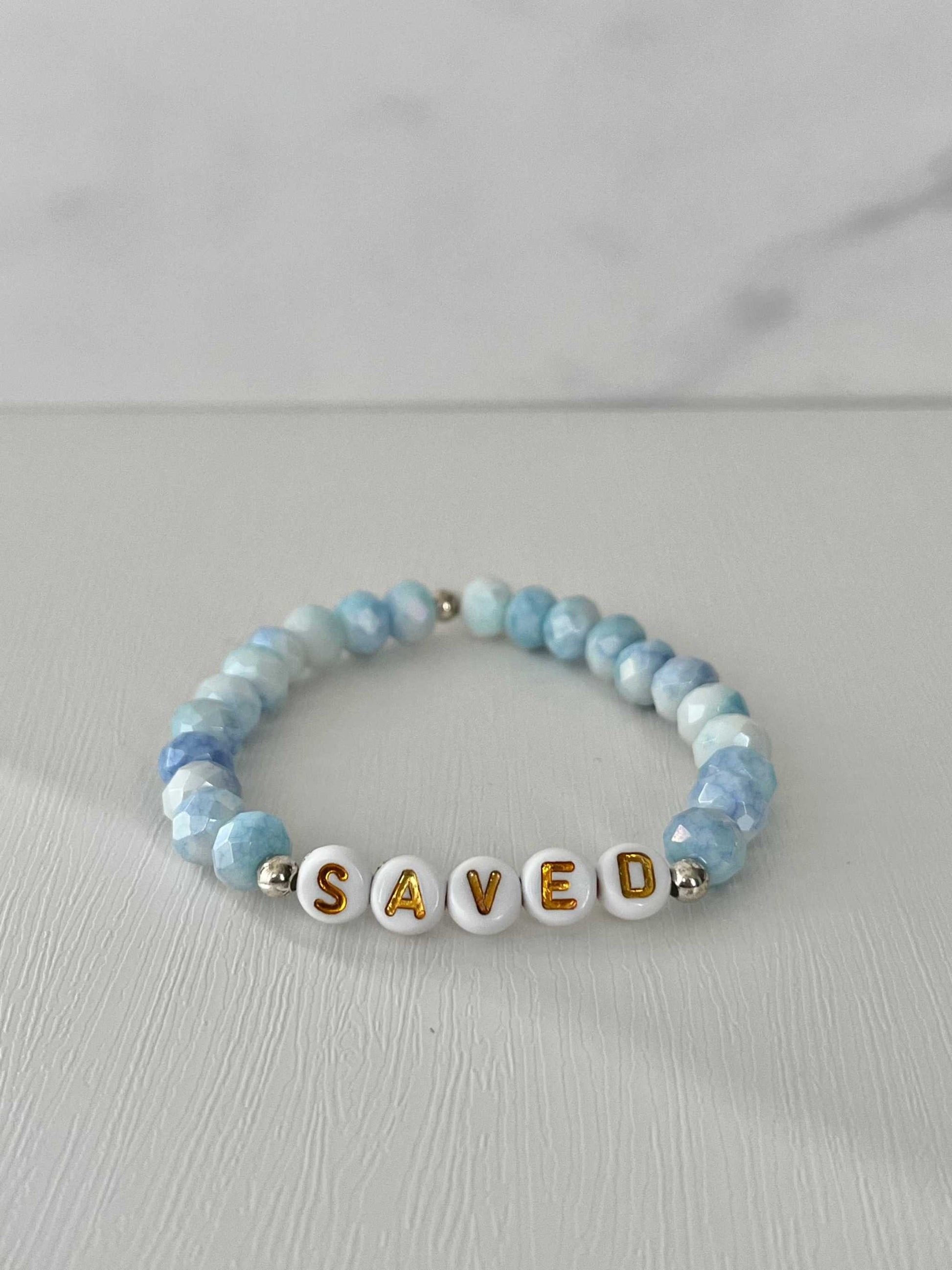 Embrace the beauty of faith with our Saved Beaded Bracelet, designed with faceted jade beads available in soothing mint or blue hues. This Saved Beaded Bracelet is inspired by the Biblical concept of being saved, reflecting the grace and renewal found in a life dedicated to Christ. Each bead in this Saved Beaded Bracelet is a reminder of the strength and peace that come from being saved.